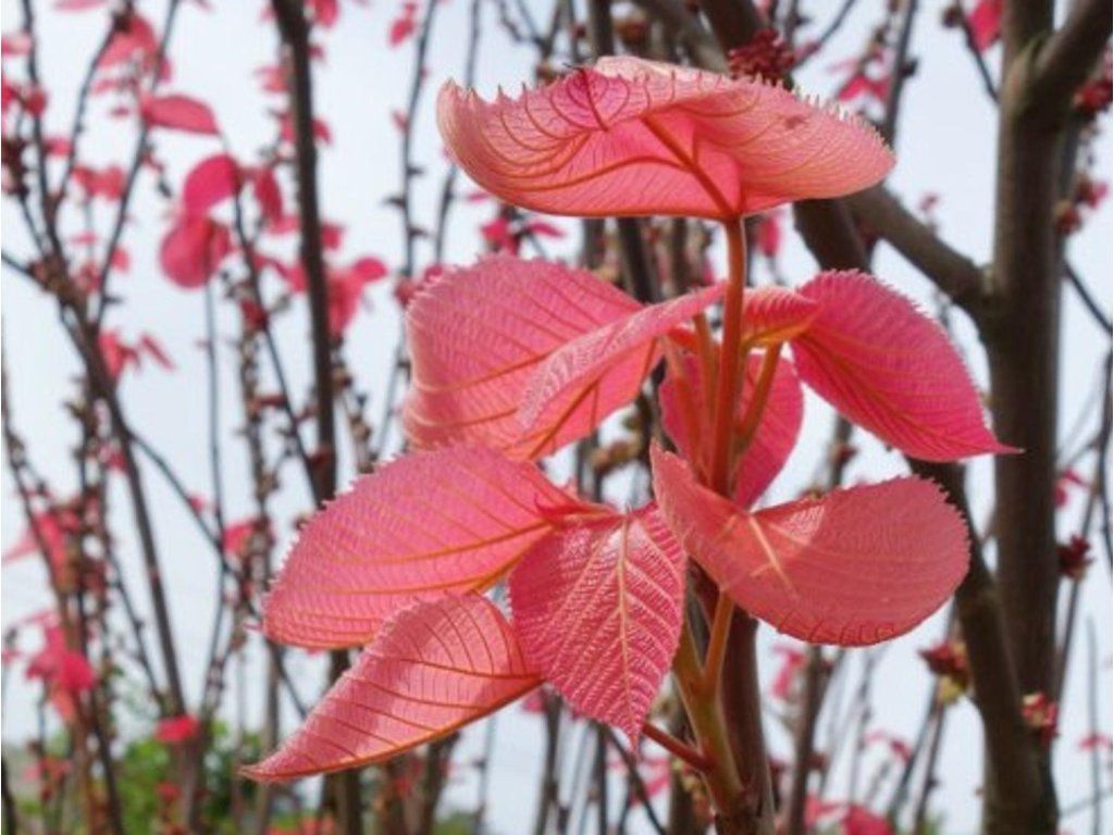 Alchornea Davidova - bardzo interesujący krzew pod względem koloru; pochodzi z Chin. Jest to roślina zrzucająca liście, która w wieku dorosłym osiąga wysokość 1-2 m. Pokrój jest raczej wielopniowy, gałęzie mają tendencję do lekkiego pochylania się ku ziemi. W maju zaczynają rozwijać się zaokrąglone, sercowate liście, wiosną mają wyraźny różowo-łososiowy kolor. W kątach liści pojawiają się drobne kwiaty ułożone w grona. Liście latem są ciemniejsze, zielone, jesienią nabierają wyjątkowego odcienia żółto-różowego zabarwienia.