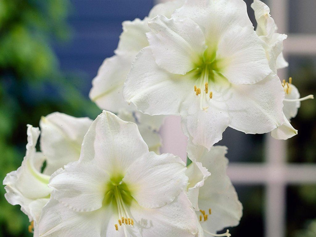 Amarylis 'Christmas Gift' - jeśli posadzisz tę amarylis na czas, będzie to prawdziwy świąteczny prezent. Na grubych łodygach wznoszą się śnieżnobiałe kwiaty, które są duże. Gardziel jest lekko żółtawa, pylniki są białe z delikatnie żółtym zakończeniem. Osiąga wysokość około 50 cm. Łodygi są grube, liście mają podłużny kształt, są zaostrzone i soczyście zielone. Kwitną od stycznia do marca, zazwyczaj 6 - 10 tygodni po posadzeniu.