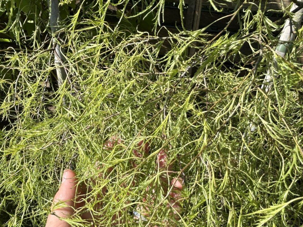 Brzoza brodawkowata 'Karaca' - karłowa odmiana brzozy brodawkowatej z rodziny brzozowatych. W przeciwieństwie do gatunku podstawowego, który dorasta do dziesiątek metrów w krajobrazie, rośnie powoli i tworzy zwarte drzewko o gęstym rozgałęzieniu. Pędy wyrastają pod szerszym kątem, a ich końce łukowato opadają, dzięki czemu korona wygląda jak delikatna zasłona. Największą osobliwością są liście - są one opadające, jasno- do świeżo zielonych, głęboko wycięte w wąskie łaty, dzięki czemu z wyglądu przypominają koronkę. Jesienią przebarwiają się na żółto-złote tony. W marcu do kwietnia pojawiają się kotki, które dostarczają pyłku wczesną wiosną. Efekt zimowy uzupełnia typowa jasna kora brzozy brodawkowatej z ciemniejszymi przetchlinkami. W ogrodzie sprawdza się jako soliter przy wejściu, na skraju trawnika, w miejskich przedogródkach i w większej donicy, gdzie uwydatni się szczegół ulistnienia. Liście bywają drobniejsze niż u zwykłej brzozy brodawkowatej, często o długości 3–6 cm, a dzięki krótszym międzywęźlom korona wygląda delikatnie nawet bez formowania. Młode gałązki są brązowawe, później przechodzą w szarobiałą korę, która z wiekiem miejscami łuszczy się cienkimi paskami. W kompozycjach dobrze komponuje się z trawami ozdobnymi, krzewami wrzosowatymi, tawułami lub bylinami o srebrzystych liściach, na przykład lawendą czy piołunami. Pyłek brzozy jest ogólnie silnie alergizujący, co należy wziąć pod uwagę przy umieszczaniu jej w pobliżu okien i tarasów.