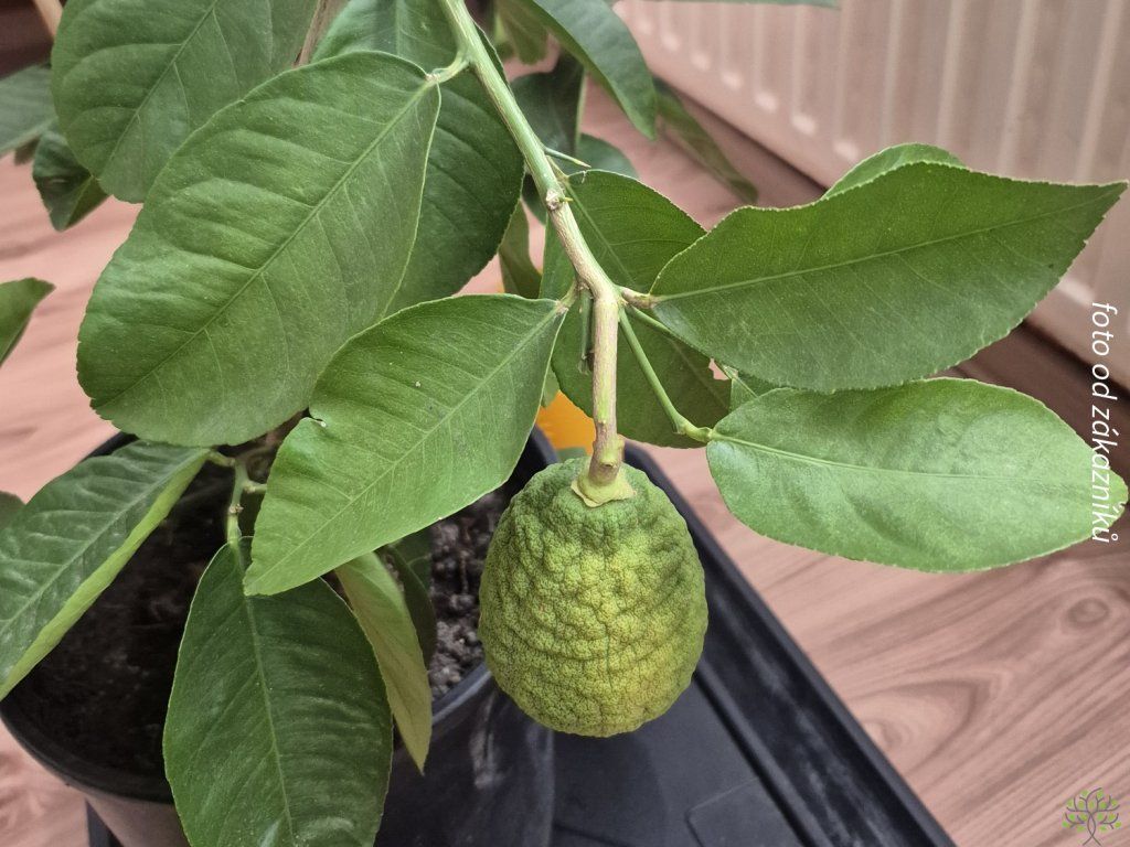 Cytrus - starożytny cytrus pochodzący z regionu Himalajów i Azji Południowo-Wschodniej, ceniony w basenie Morza Śródziemnego od wieków za silnie aromatyczną skórkę. W pojemnikach w naszych warunkach tworzy wiecznie zielony, ciernisty krzew lub niskie drzewko o wysokości około 1,5–2 m i szerokości około 1–1,5 m, co czyni go wyrazistą dominantą tarasu lub ogrodu zimowego. Korona jest nieregularna, gałęzie posiadają krótkie ciernie i duże, skórzaste, intensywnie zielone liście, które po zgnieceniu uwalniają typowy cytrynowy zapach. Od późnej wiosny pojawiają się duże białe kwiaty z delikatnym purpurowym odcieniem na zewnętrznej stronie, zebrane w grona i silnie pachnące, główne kwitnienie odbywa się w maju i czerwcu, często powtarza się latem. Z kwiatów powstają bardzo duże, owalne do maczugowatych owoce o długości zazwyczaj 15–20 cm z grubą, chropowatą żółtą skórką i stosunkowo małym miąższem. Gruba biała albedo po sparzeniu jest delikatnie słodkawa i używana jest do kandyzowania i do świątecznych wypieków, świeża skórka nadaje wyrazisty aromat domowym lemoniadom, sałatkom i likierom. Miąższ jest mniej soczysty i lekko kwaśny, nadaje się głównie do aromatyzowania napojów i słonych potraw. W uprawie pojemnikowej owoce zazwyczaj dojrzewają od października do stycznia, często jednocześnie z kolejną falą kwitnienia, więc na jednej roślinie bywają kwiaty i owoce o różnych rozmiarach.