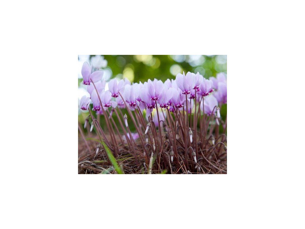Cyklamen purpurowy - bylina, dorastająca do wysokości 10-15 cm. Ma wyraziste odcienie karmazynowych kwiatów, a zielone liście zdobi jasny srebrzysty rysunek. Kwitnie w sierpniu i wrześniu. Idealna na rabaty, do pojemników lub ozdobnych koryt. Może być również uprawiana jako roślina pokojowa.