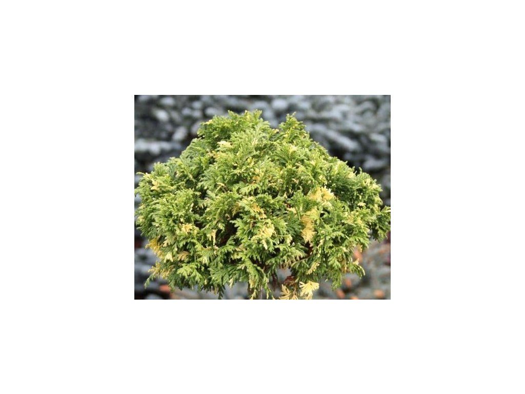 Cyprysik groszkowy 'Gold Dust' - średnio szybko rosnący cyprysik o kulistym, bardzo gęstym pokroju. Zielony kolor uzupełniają złoto-żółte przebarwienia. W ciągu dziesięciu lat dorasta do wysokości 1,5m, w dorosłości osiąga 2m.
