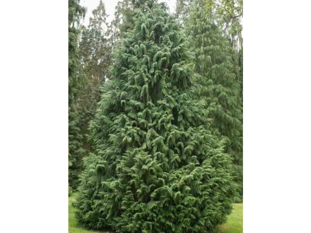 Cyprysik nutkajski - znany również jako cyprysik Nootka, jest potężnym drzewem iglastym pochodzącym z Pacyficznego wybrzeża Ameryki Północnej. Drzewo to jest cenione za swój okazały wzrost, elegancką, stożkową koronę i zapach drewna podobny do cedru. Cyprysik nutkajski w naturze dorasta do około 30–40 metrów wysokości, w warunkach ogrodowych zazwyczaj jest mniejszy, około 10–20 metrów, o powolnym do umiarkowanego wzroście. Igły są ciemnozielone, miękkie, łuskowate i ułożone w gęste gałęzie, które tworzą regularny, stożkowaty kształt korony. Kora jest często czerwonobrązowa i łuszczy się w pasmach. Cyprysik nutkajski nadaje się jako drzewo soliter w rozległych ogrodach, parkach lub większych przestrzeniach publicznych, gdzie wyróżnia się imponującym wzrostem i atrakcyjnym pokrojem. Dzięki swojej wytrzymałości i trwałości drewna jest również wykorzystywany w stolarstwie i budownictwie. Jest to eleganckie i majestatyczne drzewo iglaste, które wnosi do krajobrazu naturalne piękno i spokój.