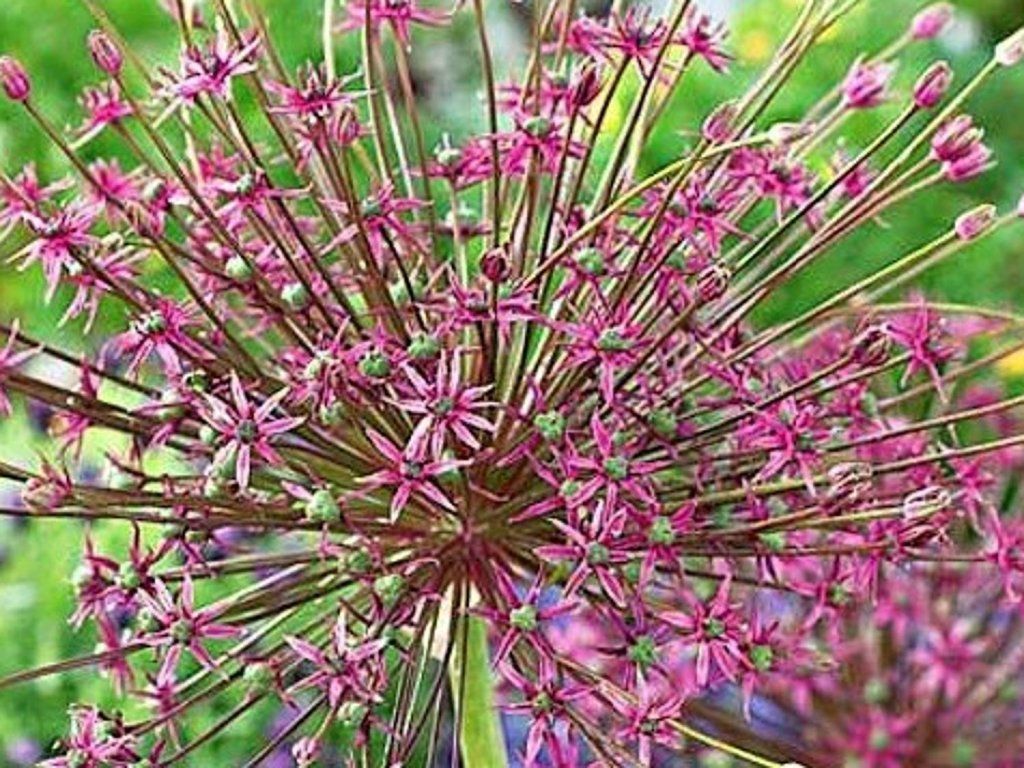 Czosnek 'Schubertii' - bardzo ładny. ciekawy i piękny gatunek czosnku ozdobnego. W pełni rozwinięty standardowo osiąga wysokość około 30-50 cm. Główka składa się z drobnych fioletowych kwiatów, z główki wyrastają wyrostki. Kwiatostany pojawiają się od marca do maja. Osobliwość odpowiednia do każdej rabaty.. Liście zachowują klasyczny, ciemnozielony kolor i owalny kształt. Kwiatostany rozkwitają na wysokich i mocnych łodygach. Pięknie prezentuje się na rabacie bylinowej lub w donicy. Nie jest wymagający w uprawie i dobrze przezimuje w gruncie z okrywą zimową.
