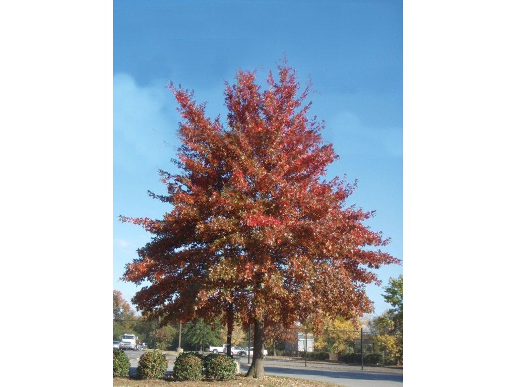 Dąb szkarłatny - urocze drzewo liściaste, które wnosi do krajobrazu wyraziste elementy kolorystyczne i przyjemny cień. Charakteryzuje go masywna i szeroko rozłożysta korona, tworząca nieregularnie wydłużony, półkulisty kształt u szczytu. Drzewo osiąga wysokość około 20 metrów. Kora jest ciemnoszara do prawie czarnej i lekko szorstka. Jego młode pędy są początkowo owłosione, później stają się nagie i żółtobrązowe. Liście dębu szkarłatnego są z wierzchu jaskrawozielone i błyszczące, podczas gdy spód jest jaśniejszy. Mają średnio głębokie wcięcia i mają około 15 do 20 cm wielkości. Jesienią wyróżniają się efektownymi, intensywnie pomarańczowymi, szkarłatnoczerwonymi aż po wiśnioworude barwami, co tworzy imponujące wrażenie wizualne. W kwaśnej glebie mogą mieć jeszcze bardziej intensywne jesienne wybarwienie. Owocem są żołędzie, które są w jednej trzeciej zamknięte przez kupulę. Ta jest gęsto pokryta krótkimi, przylegającymi łuskami. Dąb szkarłatny występuje w mieszanych lasach liściastych we wschodniej części Ameryki Północnej i jest uważany za jeden z najbardziej odpornych gatunków dębów. Tworzy wspaniałe soliterowe nasadzenia i zapewnia przyjemny cień.