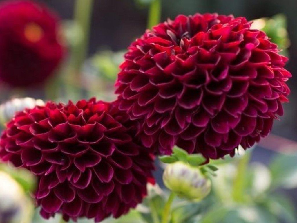 Dalia 'Jowey Mirella' - prawdopodobnie najciemniejsza czerwona odmiana wśród dalii. Kwiatostan jest średniej wielkości, kulisty i kwitnie od czerwca do października. Płatki kwiatowe tworzą ruloniki, co zapewnia tej odmianie niezwykłość. Dzięki wysokim i mocnym łodygom ta dalia nadaje się do cięcia. Osiąga wysokość około 90 cm.