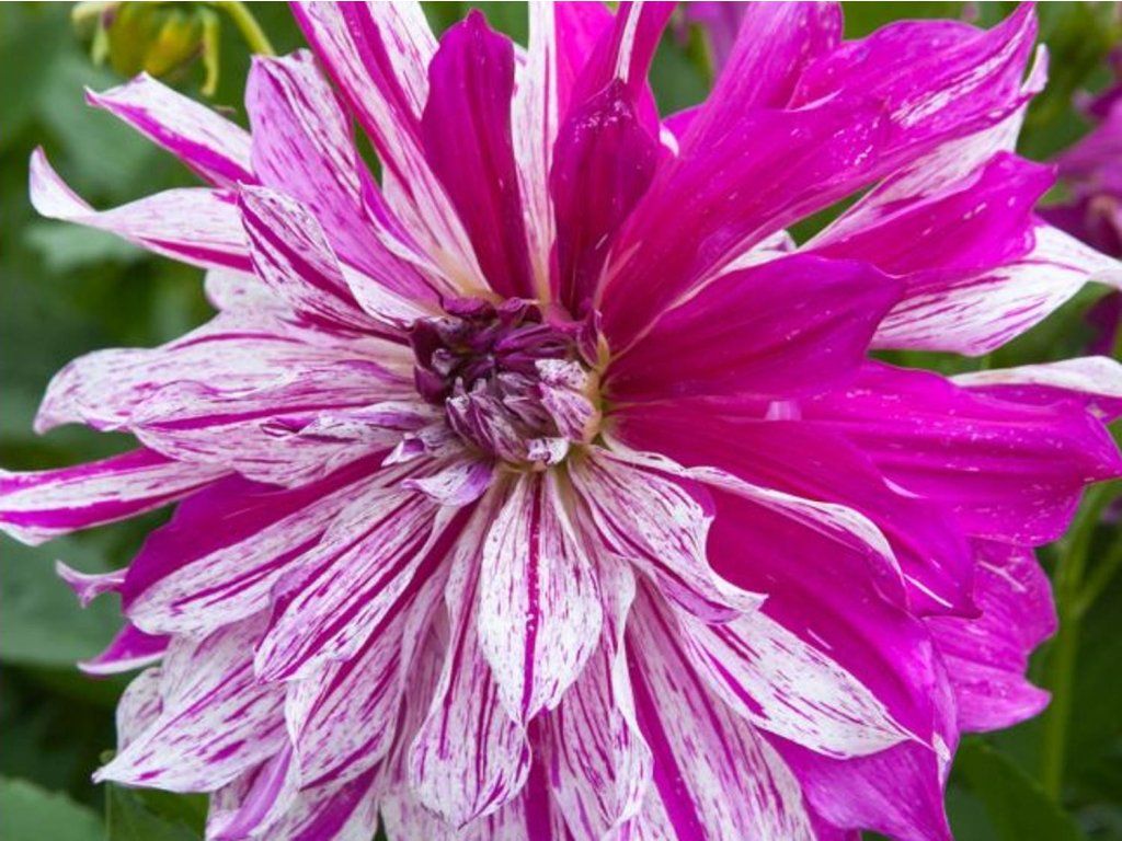 Dalia 'Taiheiyo' - żadne dwie kwiaty tej odmiany nie są takie same, każdy jest oryginalny! Kwiaty są białe z purpurowo-różowymi paskami i plamkami lub po prostu czysto lawendowe. Na mocnych, sztywnych łodygach dorastają do 90 cm. Kwitną wczesną wiosną i kwitną aż do pierwszych przymrozków. Nadają się do nasadzeń grupowych i jako soliter. Sprawdzą się również jako kwiaty cięte w wazonie.