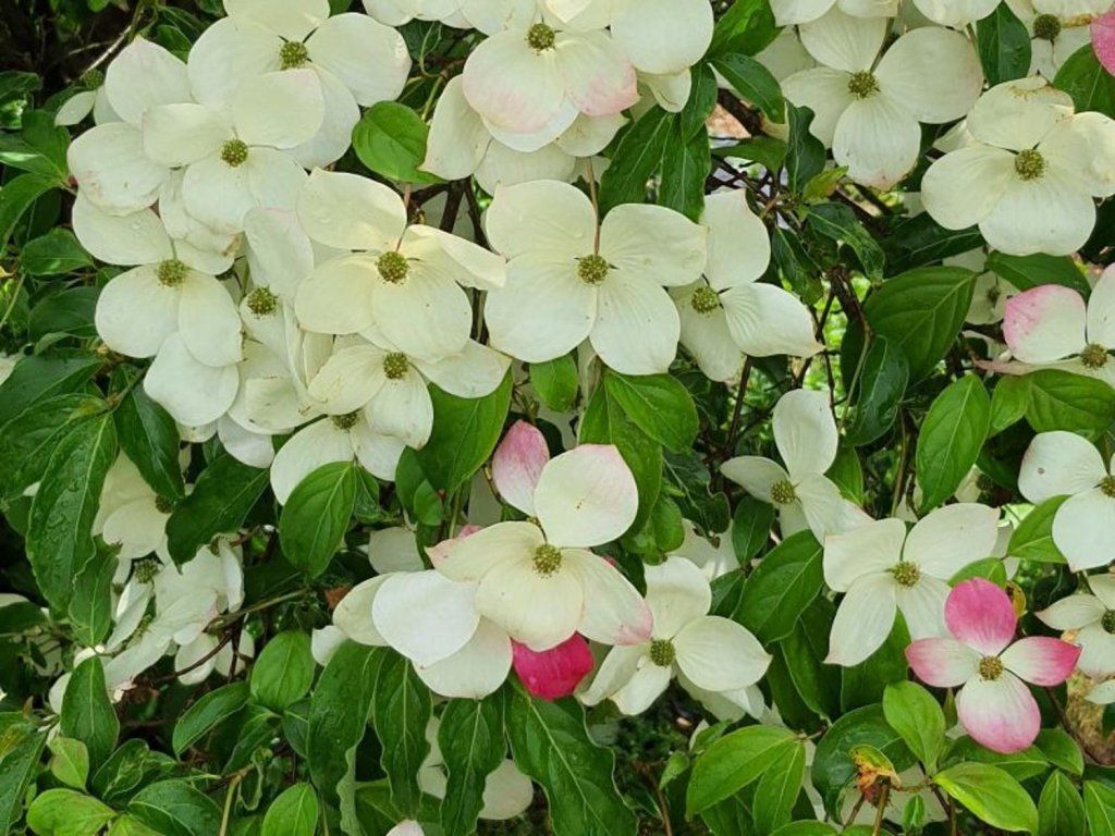 Dereń 'Norman Hadden' - majestatyczny i według wielu ekspertów najpiękniejszy mieszaniec świata dereni (Cornus kousa x Cornus capitata), który łączy egzotyczny wygląd z zaskakującą odpornością. Kultivar ten rośnie jako rozłożysty, piętrowy krzew lub mniejsze, wielopniowe drzewo, które w dorosłości osiąga wysokość i szerokość około 4 do 6 metrów. Jego korona jest przewiewna, elegancka i z wiekiem nabiera malowniczości. Liście są intensywnie zielone, lekko skórzaste i w cieplejsze zimy mogą utrzymywać się na gałęziach (jest półzimozielony). W naszych warunkach jednak z nadejściem jesieni, w październiku, zazwyczaj przebarwiają się na wspaniałe odcienie jaskrawej czerwieni i pomarańczu, zanim opadną. Kwiaty u tej odmiany są absolutnym unikatem dzięki swojej zmienności kolorystycznej. Pojawiają się w czerwcu i lipcu, a ich prezentacja ma trzy fazy. Rozkwitają jako duże, czysto kremowo-białe gwiazdy, z czasem na brzegach zaczynają pojawiać się różowe tony, a przed przekwitnięciem całe podkwiatki przebarwiają się na intensywny, romantycznie różowy aż malinowy odcień. Biorąc pod uwagę długi czas kwitnienia, można zobaczyć na jednym drzewie wszystkie te kolory jednocześnie, co tworzy niepowtarzalny efekt wizualny. Owoce dojrzewają pod koniec lata i są u tego kultivaru wyjątkowo efektowne. Są to duże, intensywnie różowo-czerwone kuleczki na długich szypułkach, które przypominają wiszące truskawki. Są jadalne, mają słodki miąższ, a na drzewie wyglądają jak naturalne ozdoby choinkowe, które chętnie wyszukuje ptactwo. Ten dereń sprawdzi się przede wszystkim jako majestatyczny soliter w średnich i większych ogrodach, gdzie ma wystarczająco dużo miejsca dla swojej szeroko rozłożystej korony.
