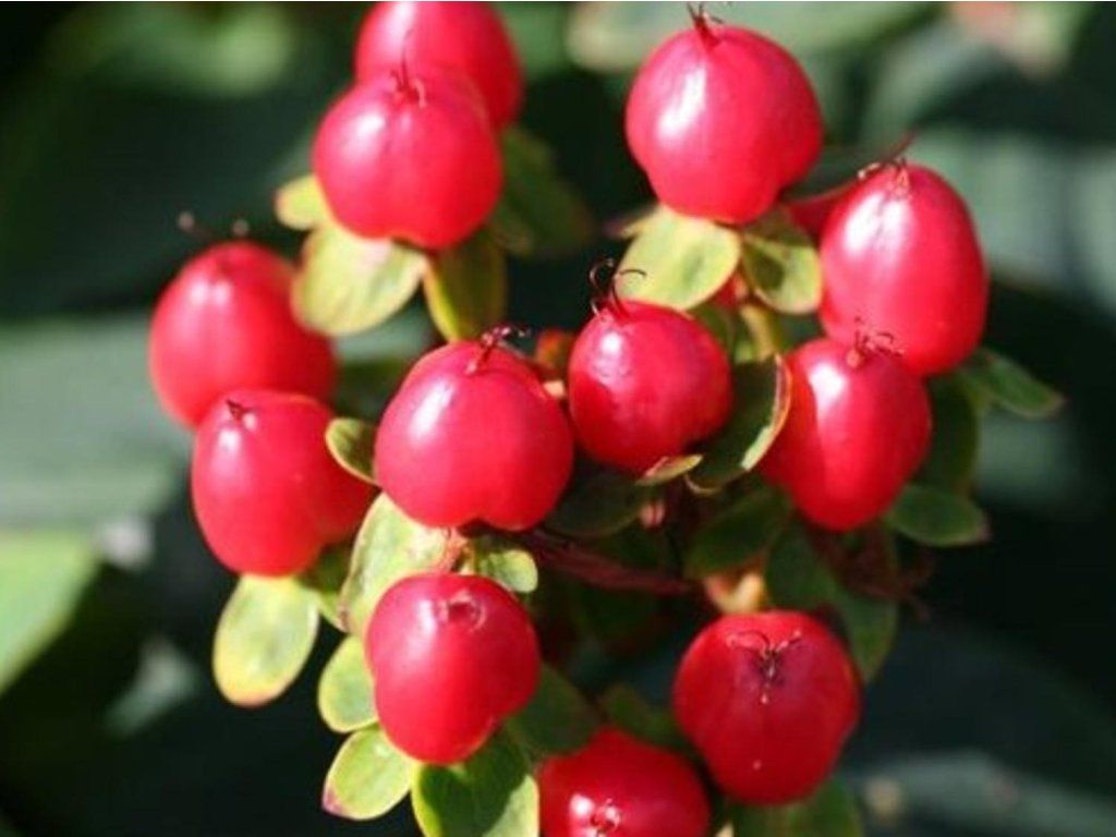 Dziurawiec zwyczajny Magical Red Fame 'Kolmaref' - wysokiej jakości sadzonka, która ma półzimozielone liście. Są ciemnozielone. Jest to dość gęsty i dobrze rozgałęziony wzrost. Osiąga wysokość 80 - 100 cm i szerokość 60 - 80 cm. Od maja do czerwca pojawia się mnóstwo małych żółtych kwiatów. W czerwcu i lipcu kwiaty te zamieniają się w ciemnoczerwone jagody, które zdobią roślinę aż do późnej jesieni. Ciemne liście i czerwone jagody tworzą ciekawy kontrast.