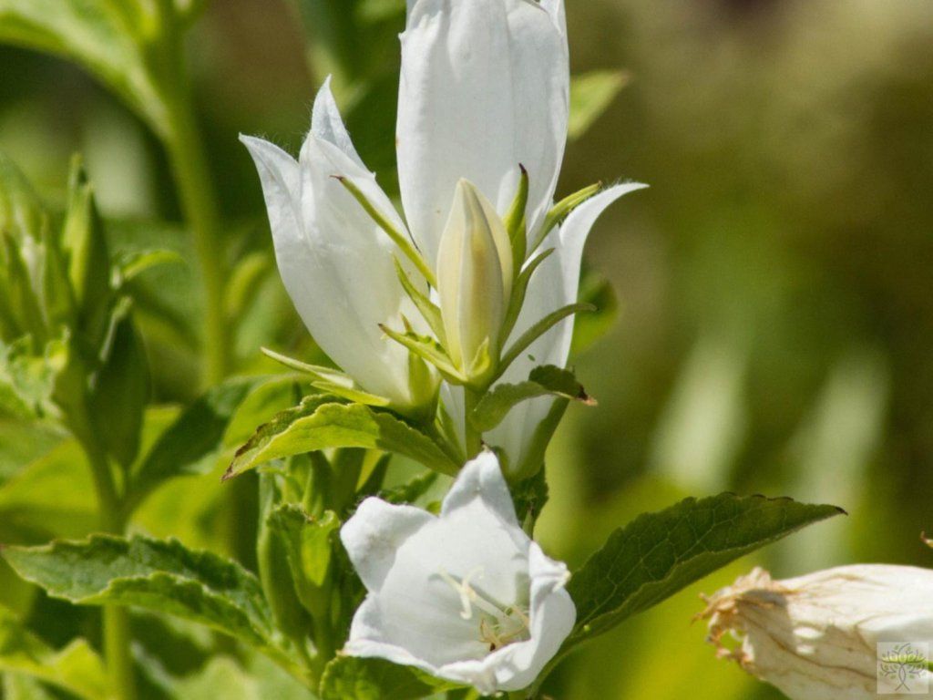Dzwonek brzęczolistny 'Alba' - wysoka bylina, osiągająca wysokość do 1 m. Wysokie łodygi zdobią duże i białe kwiaty, które mają śnieżnobiały kolor i dzwonkowaty kształt. Liście są lancetowate i mają soczystozielony kolor. Kwitnie od lipca do września. Ta romantyczna piękność nie może zabraknąć w Twoim ogrodzie. Sprawdzi się jako soliter lub jako część rabaty bylinowej. Doskonale prezentuje się w połączeniu z niższymi bylinami. Roślina jest mrozoodporna.