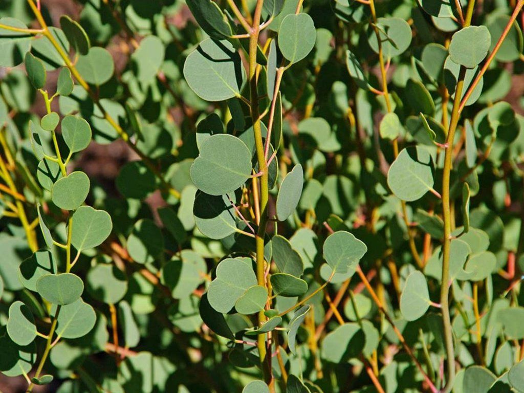 Eukaliptus - bardzo popularna odmiana eukaliptusa, której popularność w ostatnich latach gwałtownie rośnie. Jego liście są zimozielone, wyraźnie sercowate i intensywnie zielone. Rosną na pionowo rosnących pędach, które są oliwkowo-zielone z czerwonym zabarwieniem, tworząc tym samym świeży kontrast kolorystyczny z liśćmi. W starszym wieku kora zdrewnia i wyraźnie się łuszczy. W swoich naturalnych warunkach dorasta do wysokości 3-4 m, u nas będzie niższy. Jest to roślina niewymagająca, o minimalnych wymaganiach dotyczących podlewania, nadaje się do nowoczesnych ogrodów, na tarasy lub balkony, a także do aranżacji kwiatowych.