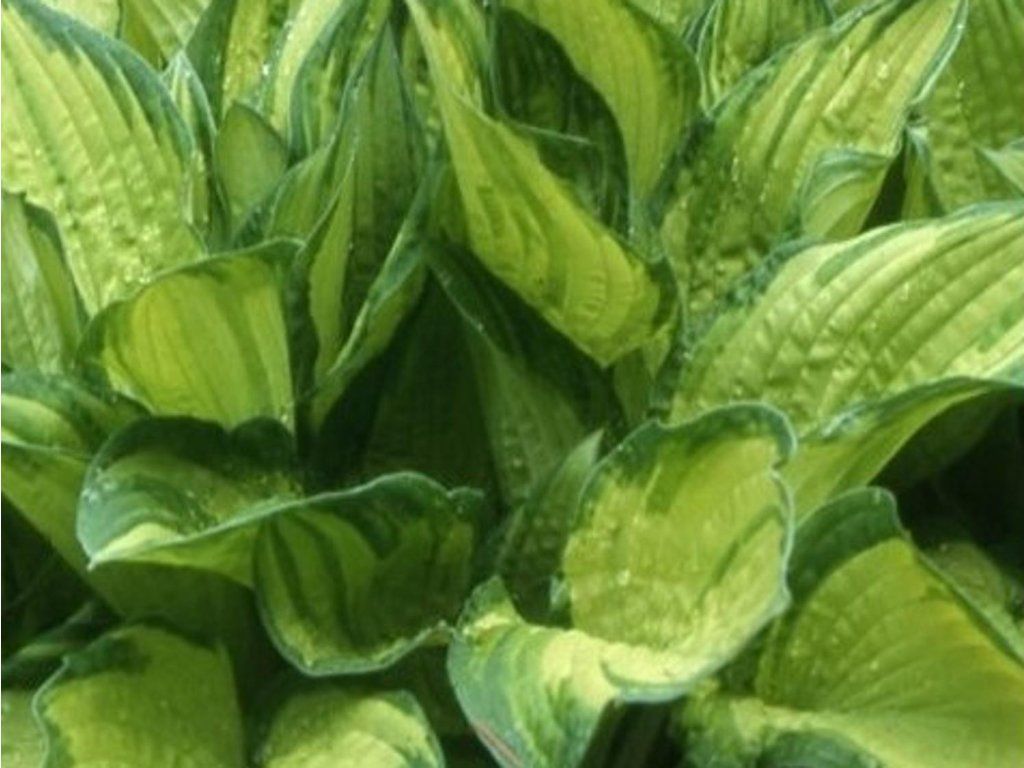 Funkia Fortune'a 'Aureomaculata' - odmiana o jasnozielonych liściach z lekko ciemniejszymi brzegami. Osiąga wysokość 60 cm. Wyróżnia się jasnym kwiatem, który pojawia się od lipca. Bardzo delikatna odmiana, którą polecamy do ogrodów skalnych lub pojemników.