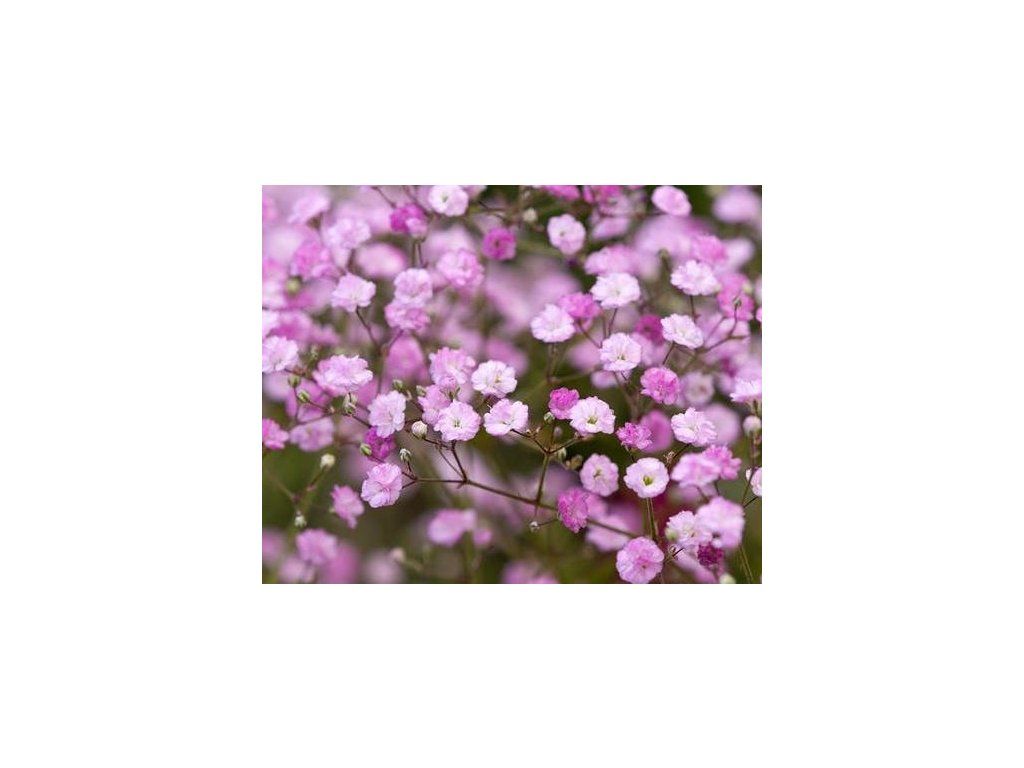 Gipsofila paniculata 'Pink' - pięknie kwitnąca bylina, osiągająca wysokość 40-60 cm. Latem, od czerwca do lipca, tworzy liczne, luźne, wielokwiatowe wiechy drobnych, jasnoróżowych kwiatów, które wykorzystywane są jako dekoracja bukietów w stanie świeżym lub suszonym. Nie może jej zabraknąć w żadnym ogrodzie.