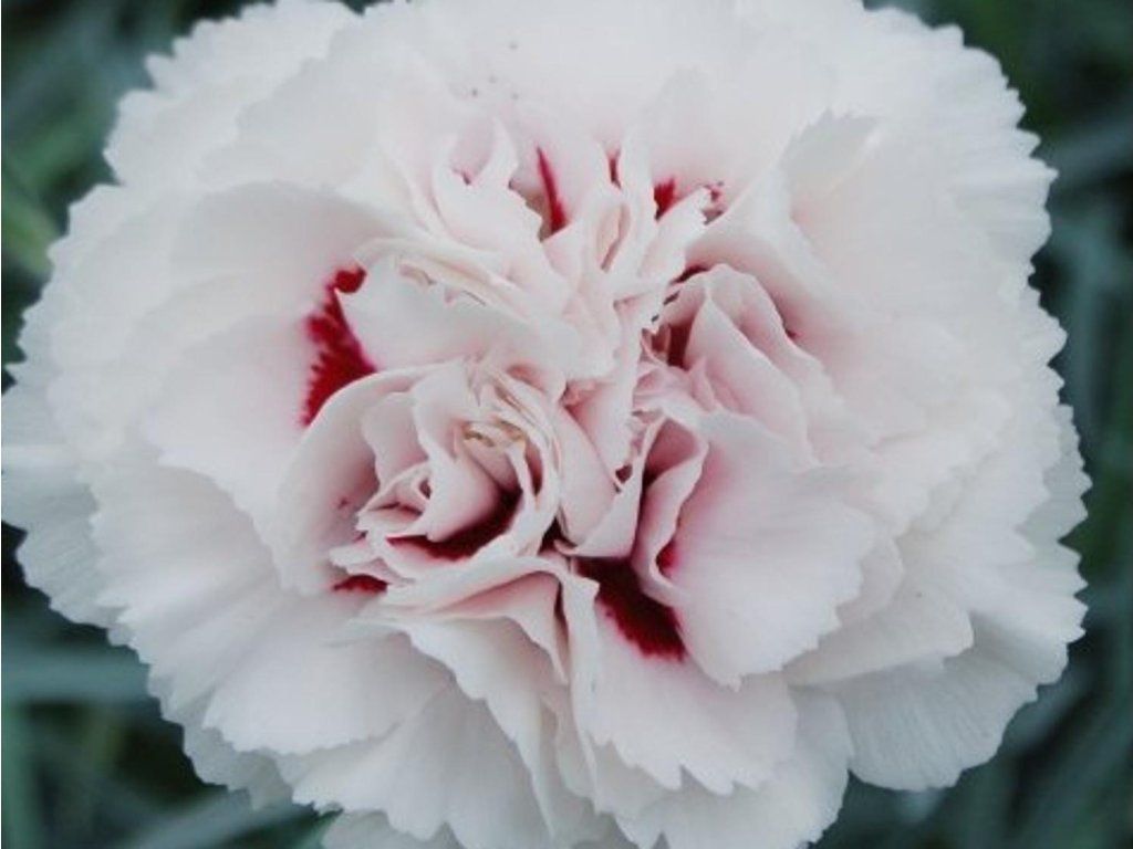 Goździk pierzasty 'Cranmere Pool' - niewymagająca i zimozielona bylina, osiągająca wysokość i szerokość 30 cm. Liście wyrastają w kępach, są szaro-zielone, wąskie, sztywne i zaostrzone. Na łodygach kwitną pełne, ząbkowane na brzegach kwiaty. Ubarwione są w świeżo biały kolor z odcieniem jasnego różu, w kierunku środka są purpurowe - to ubarwienie tworzy ciekawe oko u nasady. Kwitnie od maja do lipca. Idealny jako ozdoba skalniaka, murku lub obrzeża ścieżek.