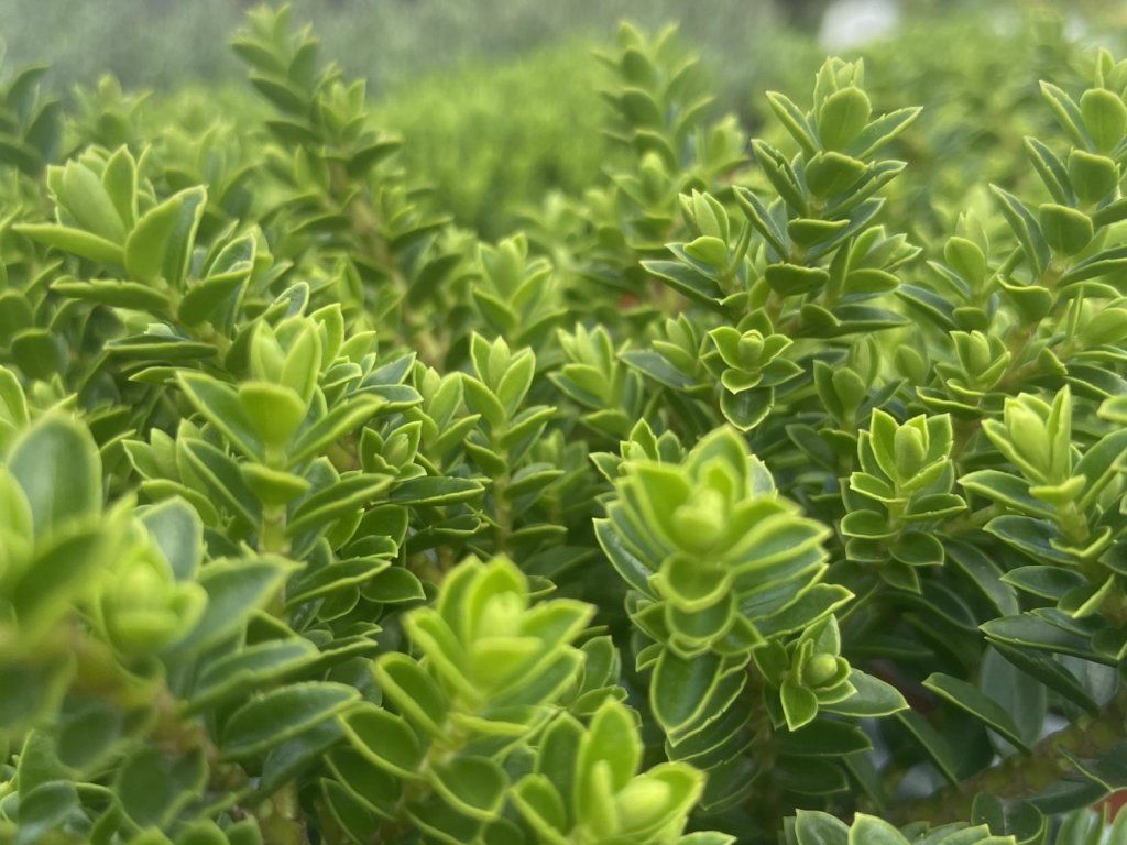 Hebe 'Frank' - bardzo atrakcyjny, wiecznie zielony krzew, osiągający wysokość i szerokość około 40 cm. Wzrost jest zwarty. Liście są drobne, węższe i intensywnie zielone. Idealna roślina do skrzynek lub jako element rabaty bylinowej. Wygląda bardzo ładnie w połączeniu z niższymi azaliami lub z kolorowymi wrzosami i wrzoścami.