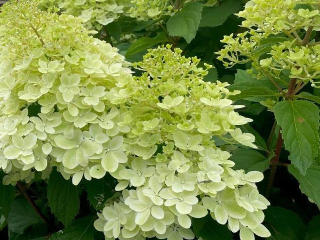 Uprawa: Hortensje bukietowe są bardzo popularne w naszych ogrodach ze względu na ich niewymagający charakter i wysoką mrozoodporność, sięgającą nawet –30 °C. W przeciwieństwie do innych gatunków, kwitną na nowym drewnie, co oznacza, że mróz zimą nie pozbawi ich kwiatów. Najlepiej rozwijają się na stanowisku słonecznym, gdzie kwitną najintensywniej, ale bez problemu tolerują również półcień. Jeśli chodzi o glebę, hortensje bukietowe są bardzo elastyczne i nie wymagają specyficznie kwaśnego podłoża; najlepiej prosperują w lekko kwaśnej do obojętnej, próchniczej glebie, która dobrze zatrzymuje wilgoć, ale nie jest stale podmokła. W przeciwieństwie do hortensji ogrodowych, pH gleby nie wpływa tutaj na kolor kwiatów. Kolor zmienia się naturalnie wraz z wiekiem kwiatu i spadkiem temperatury, przy czym ostateczny odcień zależy od konkretnego kultywaru. Podczas gdy niektóre odmiany pozostają śnieżnobiałe lub limonkowo-zielone aż do jesieni, inne przebarwiają się na delikatny róż, a jeszcze inne, jak na przykład 'Vanilla Fraise' czy 'Wim's Red', nabierają głębokich odcieni bordowych. Kluczowe jest dla nich odpowiednie nawodnienie, dlatego wymagają regularnego i obfitego podlewania, szczególnie w miesiącach letnich, przy czym gleba powinna tylko lekko przeschnąć między podlewaniami. Idealne jest ściółkowanie powierzchni wokół krzewów korą lub zrębkami, co chroni korzenie przed przegrzaniem i ogranicza parowanie. Nawożenie odbywa się od wiosny do połowy lata za pomocą nawozów dla roślin kwitnących lub kompostu, ale od sierpnia należy ograniczyć podaż azotu, aby pędy zdążyły zdrewnieć przed zimą. Absolutną podstawą sukcesu jest głęboki cięcie wiosenne przeprowadzane wczesną wiosną, zazwyczaj pod koniec lutego lub w marcu, kiedy to zeszłoroczne pędy skraca się do dwóch do trzech par pąków. Zapewni to gęsty krzew, mocne łodygi i duże kwiatostany. Przy uprawie w pojemnikach należy wybierać wystarczająco duże doniczki z odpływem i wysokiej jakości, próchniczy substrat, przy czym zaleca się izolację pojemnika na zimę. Zapobieganiem chorobom i szkodnikom jest przede wszystkim przewiewne stanowisko i podlewanie skierowane bezpośrednio do korzeni, a nie na liście.