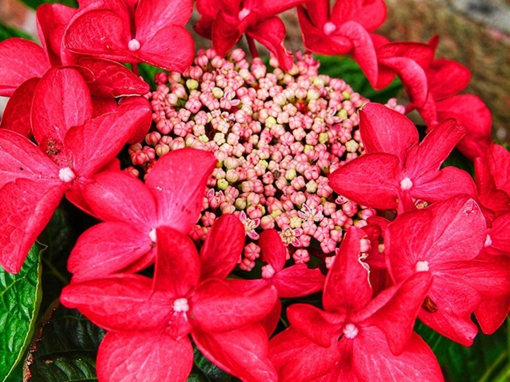 Hortensja wielkolistna 'Red bull' - krzew liściasty o zwartej budowie. W wieku dorosłym osiąga wysokość około 1 m. Kwiatostany składają się z drobnych kwiatów w kolorze różowo-czerwonym. Odczyn gleby wpływa na zabarwienie kwiatów. Ozdabia krzew od lata do jesieni. Liście mają ciemnozielony kolor, a jesienią przebarwiają się na bordowo. Idealna do doniczek i na rabaty. Bardzo ładnie prezentuje się w połączeniu z rododendronami lub azaliami. Najlepiej w półcieniu. Hortensja ogrodowa kwitnie na zeszłorocznych pędach, dlatego wiosną usuwamy tylko uszkodzone przez mróz wierzchołki pędów. Ogólnie hortensja jest popularnym elementem ogrodów, nadaje każdemu ogrodowi szlachetny i romantyczny wygląd.
