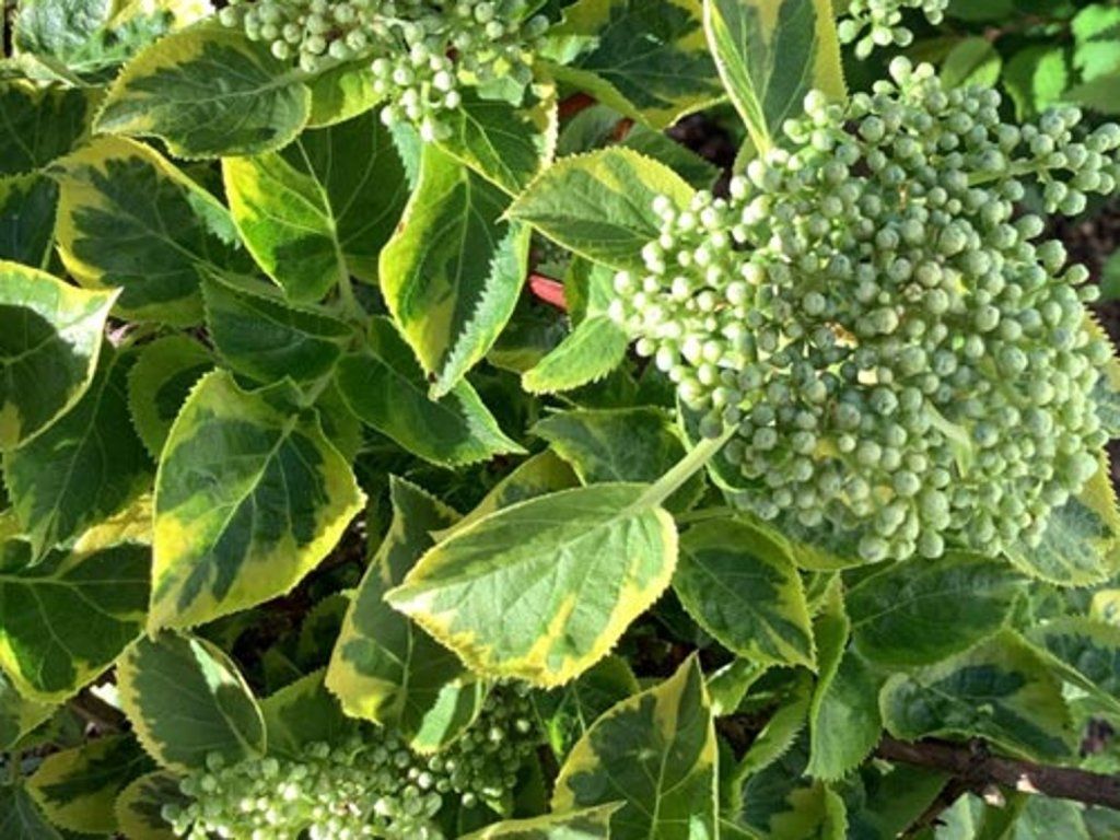 Hortensja pnąca 'Miranda' - wywodzi się z gatunku rosnącego na wilgotniejszych stanowiskach leśnych wschodniej Azji, gdzie pnie się po pniach drzew i skałach. W ogrodach tworzy pnącze, które dzięki korzeniom przylgowym samo przyczepia się do szorstkich ścian, pni lub pergoli. W naszych warunkach osiąga około 4–6 m wysokości i 2–3 m szerokości. Wzrost w pierwszych latach jest umiarkowany, po ukorzenieniu przyspiesza i tworzy gęsty pokrój bez kolców. Liście są naprzeciwległe, szerokojajowate do sercowatych, z wyraźnym unerwieniem i delikatnie piłkowanym brzegiem. Odmiana 'Miranda' charakteryzuje się obrzeżeniem – środek blaszki liściowej jest zielony, brzeg żółty do kremowego, dzięki czemu roślina optycznie rozjaśnia nawet bardziej zacienione partie. Na wiosnę odcień żółty jest bardziej intensywny, latem się uspokaja, a jesienią liście przybierają żółtozłote odcienie. Od końca czerwca do lipca roślina wytwarza płaskie kwiatostany złożone z drobnych kwiatów płodnych w środku i większych białych podkwiatek na obwodzie. Kwiaty dostarczają pyłku i nektaru pszczołom i trzmielom, zaschnięte kwiatostany pozostają na pędach do zimy i nadają krzewowi delikatną strukturę. W kompozycji ogrodu 'Miranda' sprawdzi się jako jasny akcent pionowy na północnych i wschodnich ścianach lub starszych drzewach, gdzie tworzy tło dla paproci i cieniolubnych bylin.