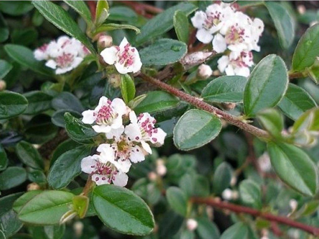 Irga Dammera 'Evergreen' - zimozielona, płożąca irga, tworząca piękne poduszki. Pochodzi z Azji, gdzie rośnie na terenach górskich i w lasach mieszanych. Dorasta do wysokości zaledwie około 15-30 cm. Charakteryzuje się drobnymi, świeżo zielonymi i okrągłymi listkami. Od maja do czerwca krzew kwitnie dużą ilością białych kwiatów, które następnie zastępują koralowo czerwone owoce. Te jagody pojawiają się we wrześniu i październiku, dzięki czemu cała roślina wygląda naprawdę bardzo dekoracyjnie. Idealna do uprawy w donicach lub na skalniakach, często wykorzystywana również jako zamiennik trawnika lub do umacniania skarp.