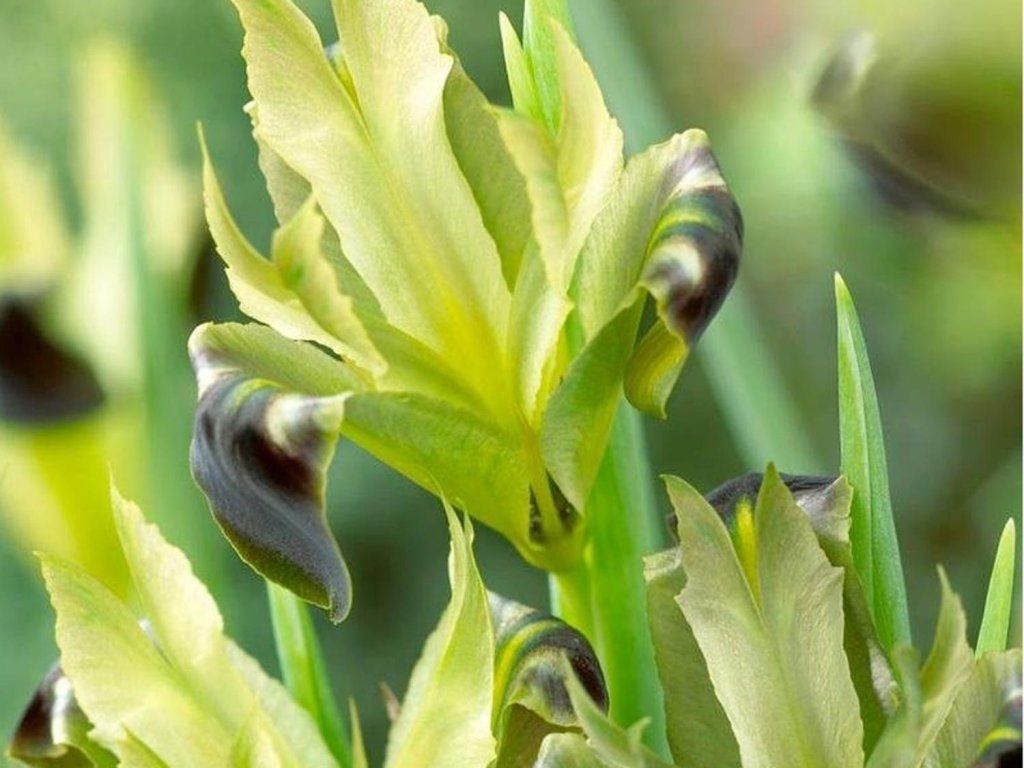 Iris tuberosa - bardzo ładny gatunek, którego nie powinno zabraknąć żadnemu miłośnikowi irysów. Z większej odległości jego kwiaty mogą wydawać się niepozorne, jednak z bliska oczarują Cię ciekawe czarno-zielone detale na płatkach. Kwitną od końca zimy i w ciągu wiosny. Osiąga wysokość 30-40 cm.