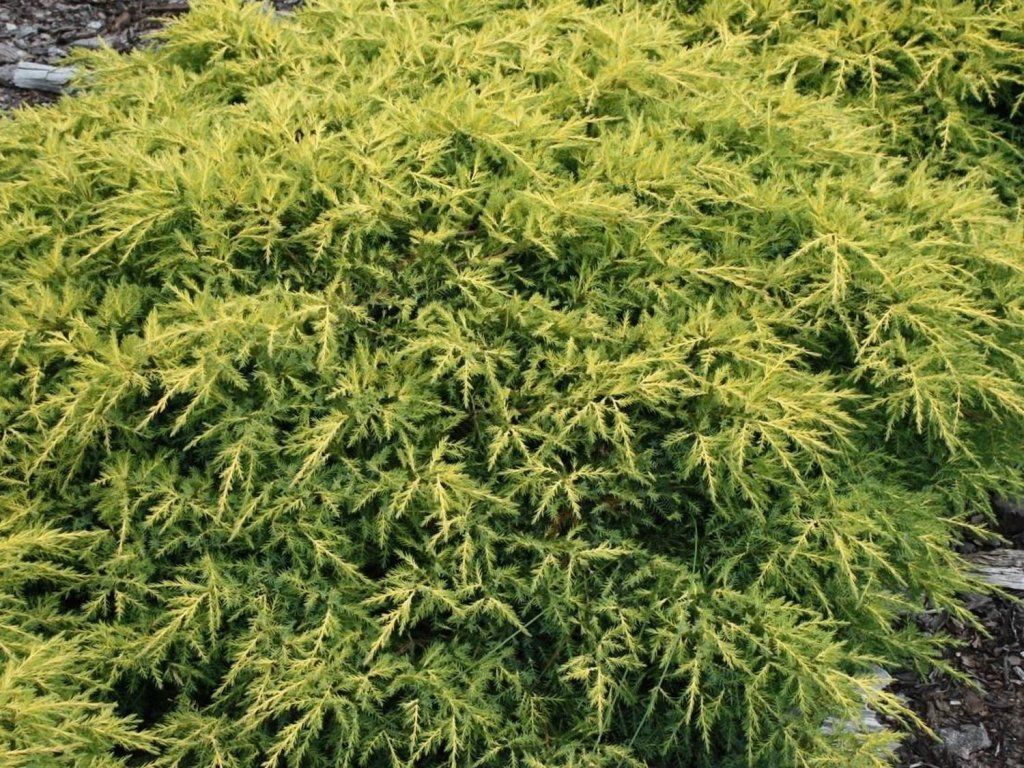 Jałowiec Pfitzera 'Goldkissen' - elegancki jałowiec o umiarkowanym wzroście, bardzo gęstym, szeroko rozrastającym się pokroju. Tworzy niski krzew. Srebrno-zielone igły wiosną mają żółto zabarwione końcówki i wyglądają naprawdę atrakcyjnie. Osiąga wysokość około 1 m przy szerokości 2 m. Często wykorzystywany na skalniaki, do ozdobnych pojemników, wspaniale prezentuje się również jako soliter.