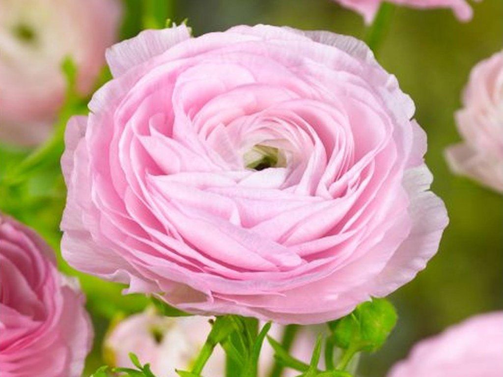 Jaskier azjatycki 'Pink' - popularny jaskier tym razem w różowych odcieniach. Jego puszyste płatki mają schludnie pofałdowane brzegi oraz duże i pełne kwiaty. Osiągają do 30 cm, idealnie nadają się do sadzenia z przodu rabaty lub w pojemnikach. Kwitnie od czerwca do sierpnia. Idealnie nadają się do cięcia, ich wspaniałe kwiaty o wielkości do 12 cm wytrzymają w wazonie nawet dwa tygodnie.