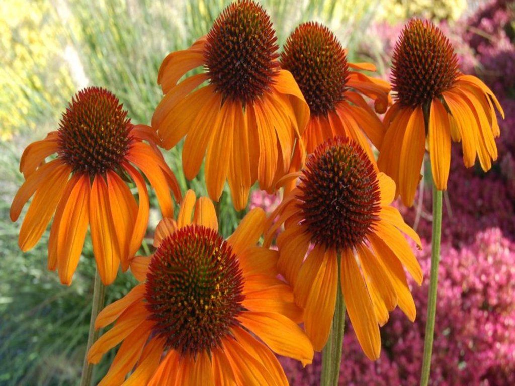 Jeżówka ´Tiki Torch´ - niewymagająca bylina wieloletnia pochodząca z Ameryki Środkowo-Zachodniej i Europy. Często używana również jako roślina lecznicza. Osiąga wysokość do 100 cm (w zależności od wybranej odmiany). Cała grupa lśni tak wieloma kolorami, że prawie niemożliwe jest wymienić je wszystkie, nie zapominając o żadnym. Niektóre odmiany zaczynają kwitnąć już na początku maja, ale najczęściej zaczynają w lipcu i trwają do późnego lata, czyli do września. Kwiaty po przekwitnieniu należy odciąć lub oderwać, łodygę jednak pozostawić dla kolejnych pąków. Roślina preferuje pełne słońce oraz dobrze przepuszczalną, lekko wilgotną glebę. Pięknie wygląda połączenie kilku odmian jeżówek jednocześnie, na przykład na pierwszym planie niższych zielonych krzewów itp.