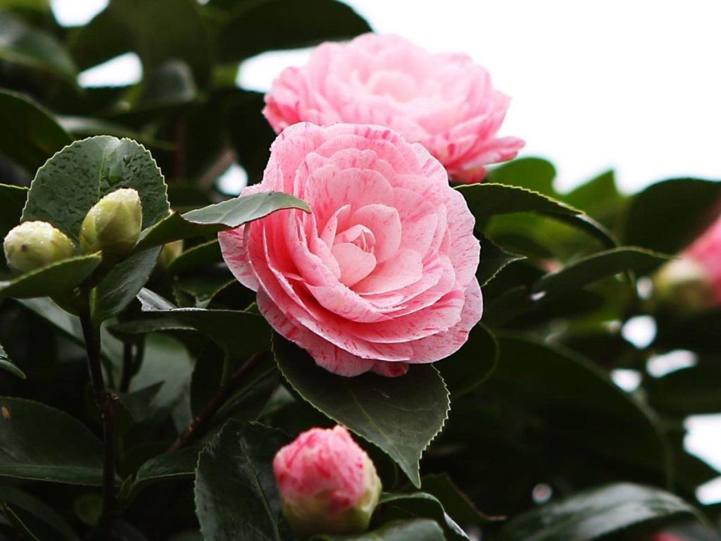 Kamellia japońska 'William Bartlett' - Camellia japonica pochodzi z wilgotnych obszarów leśnych Japonii, Korei i południowo-wschodnich Chin, gdzie rośnie w półcieniu, na próchniczych, naturalnie kwaśnych glebach z odpowiednią wilgotnością. Odmiana 'William Bartlett' należy do starszych europejskich odmian, cenionych za niezawodne kwitnienie i zrównoważony wygląd kwiatów. Krzew rośnie wolno do średnio szybko i tworzy regularny, wyprostowany do lekko rozłożystego pokroju. W warunkach ogrodowych przy długoterminowej uprawie może osiągnąć około 2-3 m wysokości i 1,5-2 m szerokości, w pojemnikach zazwyczaj pozostaje mniejsza i bardziej zwarta. Liście ma zimozielone, skórzaste, eliptyczne, ciemnozielone i wyraźnie błyszczące. Kwiaty są pełne lub gęsto pełne, o kształcie rozetowym, o średnicy około 10-12 cm. Płatki mają jednolity różowy kolor bez wzorów, który w chłodniejsze zimy może lekko się intensyfikować. Kwitnienie przebiega stopniowo od lutego do kwietnia, w zależności od przebiegu zimy. Odmiana sprawdza się głównie jako soliter w pojemnikach, w ogrodach zimowych lub w spokojnych kompozycjach z innymi roślinami kwasolubnymi. W okresie kwitnienia roślina jest umiarkowanie miododajna.