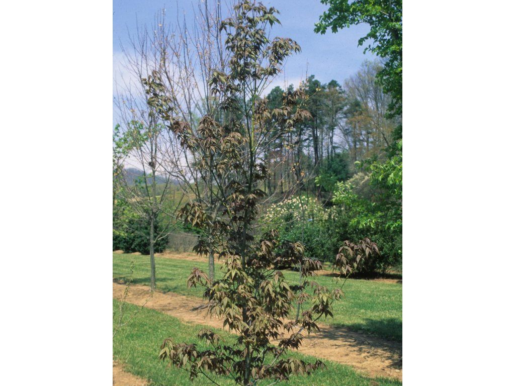 Klon jaworu - średniej wysokości drzewo, osiągające wysokość 15m, pochodzące z Azji. Ma cienkie, "papierowe" liście, z 5 wąskimi, głębokimi płatami w kolorze zielonym, różowym, fioletowym i czerwonym, jesienią pięknie żółto-pomarańczowe.
