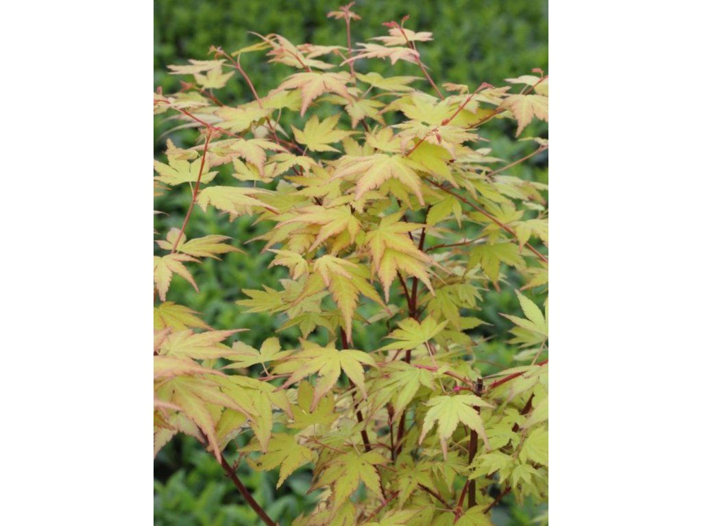 Klon klonowy 'Akane' - delikatna, bardzo dekoracyjna odmiana klonu japońskiego, ceniona przede wszystkim za niezwykłe, barwne wiosenne ubarwienie. Należy do mniejszych, wolniej rosnących odmian, które nadają się również do mniejszych ogrodów lub do pojemników. Rośnie jako zwarty krzew lub mniejsze drzewko, zazwyczaj osiągając 1,5 do 2 metrów wysokości i podobną szerokość. Ma naturalnie zaokrągloną, lekko rozłożystą koronę z cienkimi gałęziami. Liście są pięcio- do siedmioklapowe i wyraźnie dekoracyjne. Wiosenne pędy są jaskraworóżowe do jasnoczerwonych, później pojawiają się również odcienie pomarańczowe i morelowe. Latem liście przechodzą w jasnozielony kolor, często z lekkim czerwonym odcieniem na końcach. Jesienne ubarwienie jest intensywnie pomarańczowe do szkarłatnego, bardzo efektowne. Mrozoodporność jest dobra, około –20 °C, jednak młode rośliny docenią zimowe okrycie korzeni i bardziej osłonięte miejsce. Dzięki swoim kompaktowym rozmiarom i wyjątkowo atrakcyjnemu wiosennemu ubarwieniu jest doskonałym wyborem do japońskich ogrodów, małych przedogródków, podwórek, nasadzeń przy tarasach lub do uprawy w ozdobnych pojemnikach. Prezentuje się bardzo elegancko i od wiosny do jesieni zmienia swoją paletę barw, wnosząc do ogrodu dynamikę i subtelność.
