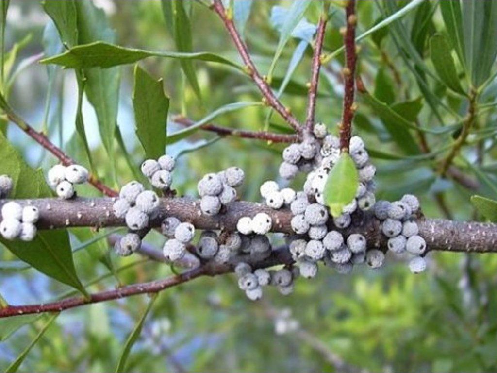 Winnica pensylwańska - gęsto rozgałęziony krzew liściasty o zaokrąglonym pokroju. Osiąga wysokość 1,5-2,5 m przy podobnej szerokości. Liście są wąskie, lancetowate, błyszczące, szaro-zielone. Kwitnie na żółto-zielono w maju. Są one poprzedzone atrakcyjnymi skupiskami małych, szaro-białych owoców, które zazwyczaj utrzymują się przez zimę i są dobrym pożywieniem dla ptaków.