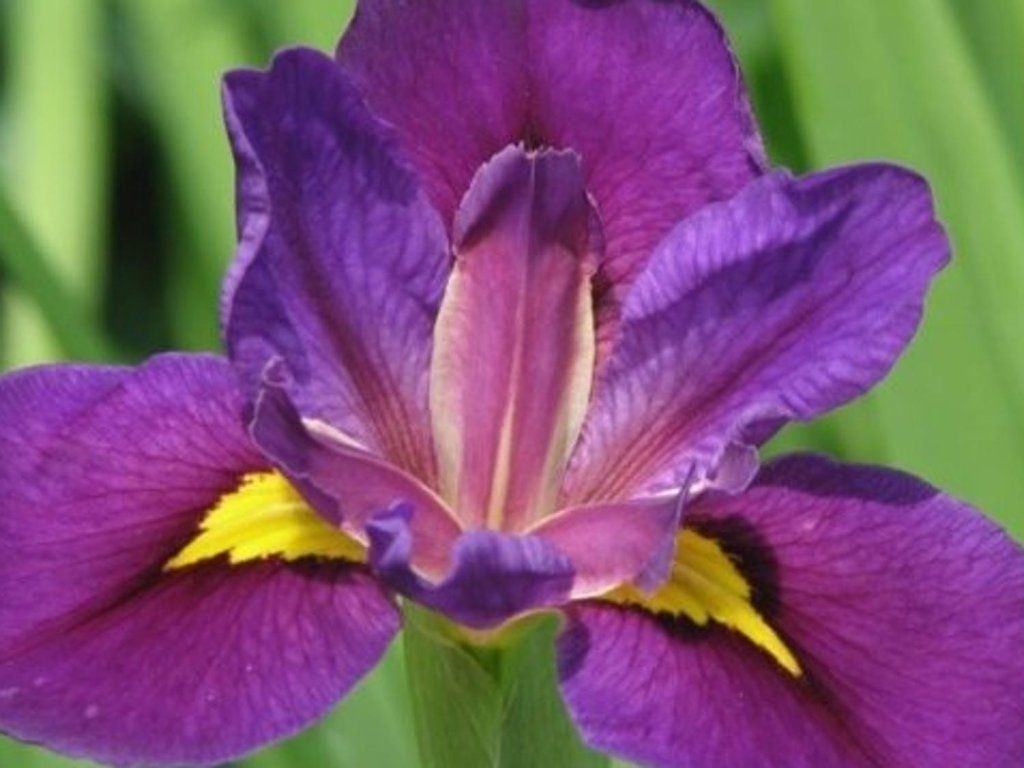 Irys 'Pegaletta' - bardzo ładna odmiana fioletowo-niebieska z jaskrawymi żółtymi oczkami sięgającymi do środka płatków. Dorasta do 70 cm wysokości i kwitnie od maja do czerwca.