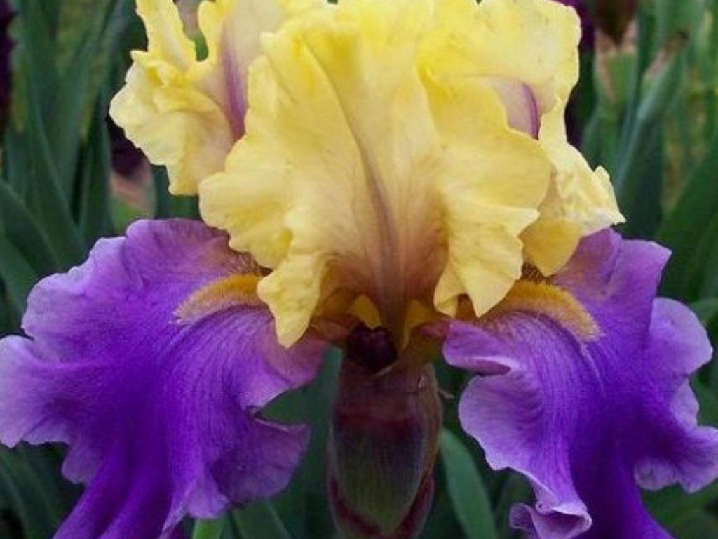 Irys niemiecki 'Edith Wolford' - bardzo ładna i interesująca odmiana irysa brodatego. Pastelowo żółta 'głowa' kwiatu płynnie przechodzi w lawendowo-fioletowe płatki na reszcie kwiatu. Osiąga wysokość 80 cm. Kwitnie od kwietnia do maja.
