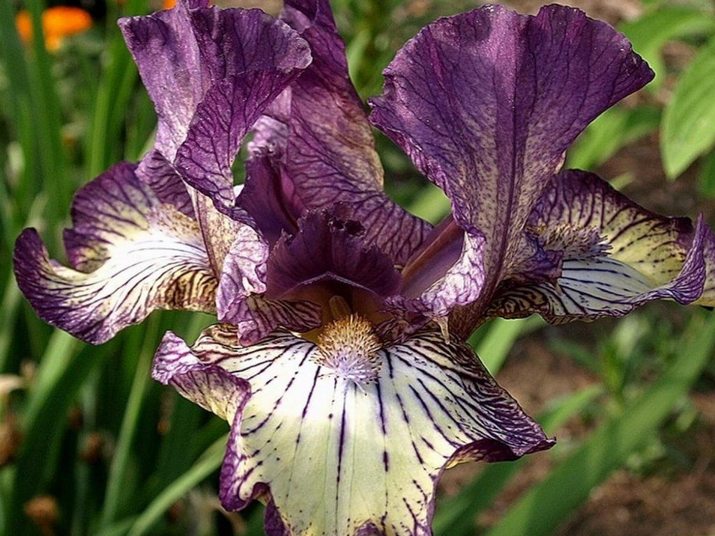 Irys niemiecki 'Gnu Rayz'- jedna z niższych odmian dorastająca do 60 cm, ale o długim okresie kwitnienia. Na jego płatkach widoczne są wyraźne fioletowe żyłki na kremowym tle, brzegi są purpurowe. Kwitnie od końca maja, a w drugiej turze pod koniec lata. Przyjemnie pachnie. Tworzy kępy mieczowatych, płaskich liści o szaro-zielonym odcieniu z niebiesko-zieloną poświatą.