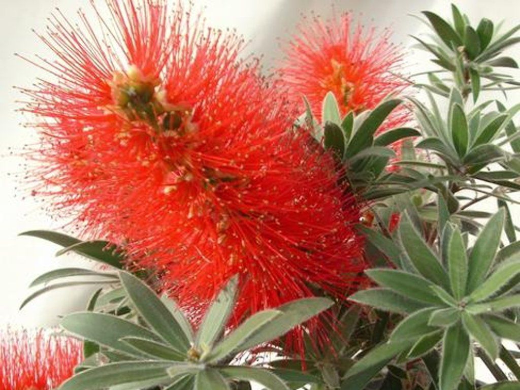 Krzewuszka 'Mini Red' - zimozielona odmiana Callistemon wybrana ze względu na bardzo zwarty wzrost i uprawę w pojemnikach oraz małych ogrodach. Tworzy gęsty, elastycznie rozgałęziony krzew o lekko zwisających końcach pędów, osiągający w wieku dorosłym około 1,0–1,2 m wysokości i 0,7–0,9 m szerokości. Ulistnienie jest wąskie, skórzaste i delikatnie szare, po roztarciu często o cytrusowym lub „cytrynowym” aromacie dzięki olejkom eterycznym typowym dla mirtowatych. Największą ozdobą są wiosenne kwiatostany, gdzie długie pręciki tworzą „szczotkę” w kolorze szkarłatnej czerwieni. Kwiatostan ma zazwyczaj około 6–8 cm długości, a główna fala kwitnienia przypada zazwyczaj od marca do maja, w cieplejszych sezonach mogą pojawić się również słabsze powtórzone fale latem. Kwiaty dostarczają nektaru i przyciągają zapylacze na słonecznych stanowiskach. Owocem jest drobna, zdrewniała torebka, wartość dekoracyjna pozostaje głównie w kontraście czerwonych kwiatów i zimozielonych liści. W kompozycji prezentuje się jako śródziemnomorski akcent w donicy przy wejściu, na rabatach żwirowych lub w towarzystwie lawendy, santoliny, rozmarynu i traw ozdobnych, gdzie delikatna tekstura liści równoważy sztywniejszy pokrój sąsiadów.