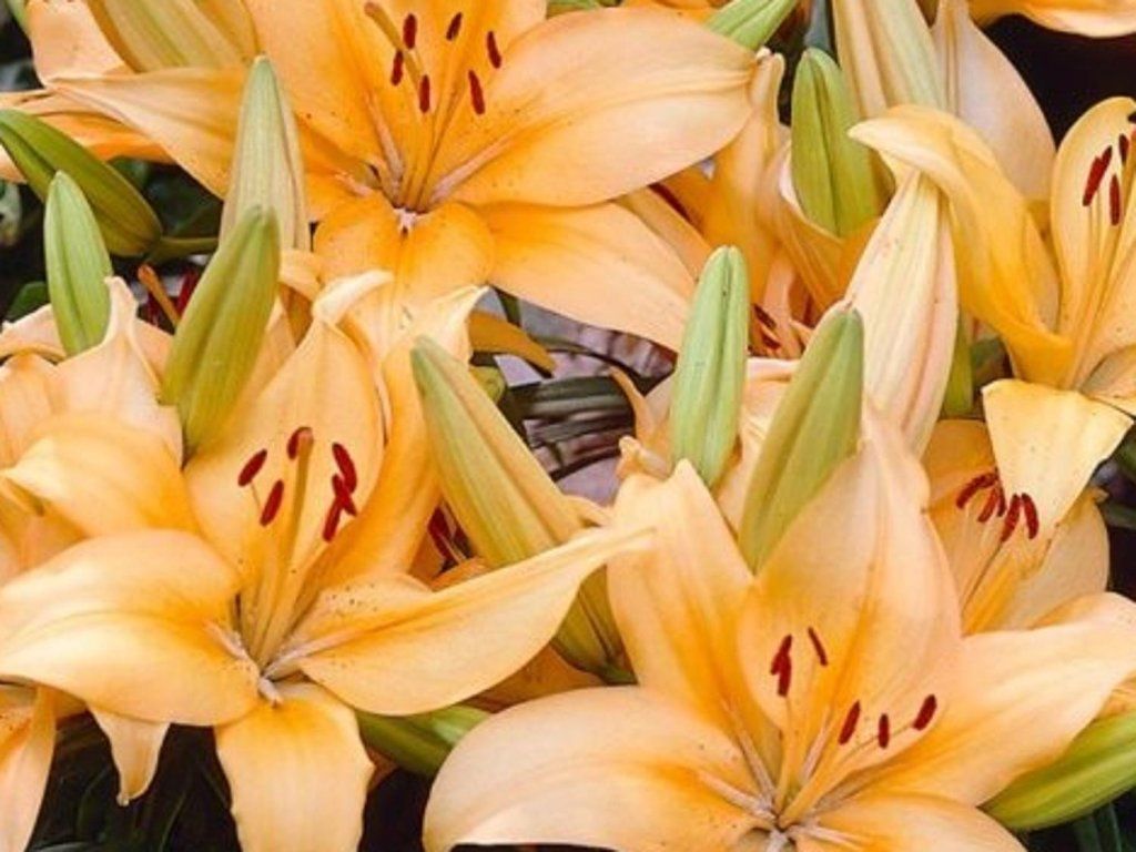 Lilie 'Buff Pixie' - Azjatycka lilia hybrydowa. Kwiatostan ma kształt gwiazdy z brzoskwiniowo-pomarańczowym wybarwieniem i niewielkim cętkowaniem. Liście są ciemnozielone, lancetowate. Osiąga wysokość około 40 cm.