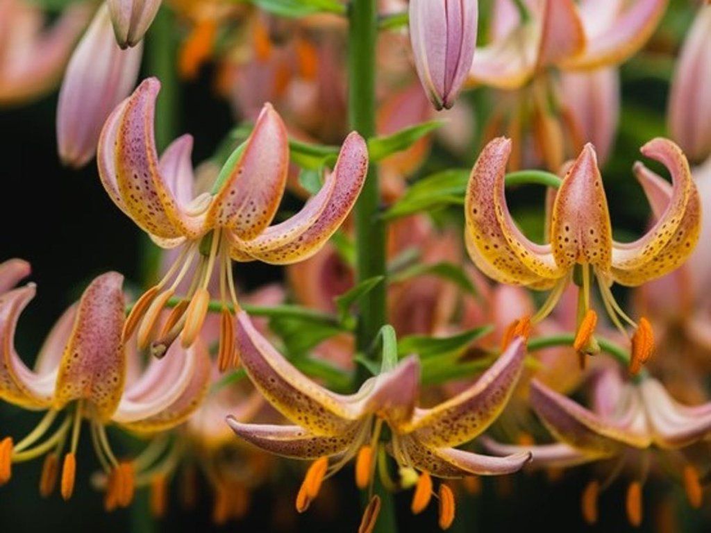 Lilium martagon 'Fairy Morning' - bardzo efektowna hybryda popularnej lilii, która charakteryzuje się coroczną, obfitą produkcją najbardziej kolorowych i pachnących kwiatów. Wyprostowane, masywne łodygi osiągają wysokość 90-120 cm, a pod koniec wiosny i na początku lata są obficie ozdobione czarującymi kwiatami. Unoszą się w powietrzu, a ich kolor stanowi idealne połączenie bursztynowo-żółtego, brzoskwiniowo-różowego z bordowymi zdobieniami. Ta lilia urozmaici każde nasadzenie grupowe lub może być uprawiana samodzielnie w doniczce.