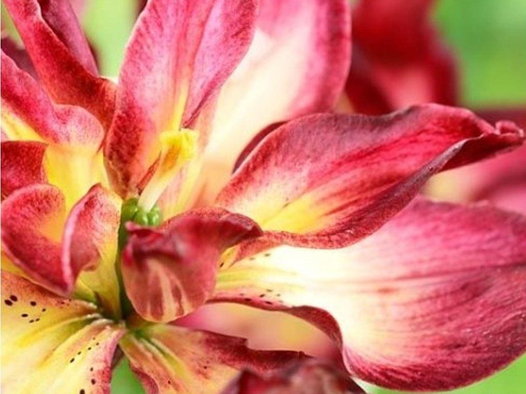 Lilie 'Double Sensation' - azjatycka lilia hybrydowa. Piękna i pełnokwiatowa lilia. Kwiaty są naprawdę wspaniałe, mają karminowo-purpurowy kolor, środki płatków są ozdobione białym kolorem. Dorastają do wysokości około 80 cm. Kwitną od połowy lata. Podwójna budowa kwiatów jest u lilii bardzo interesująca.
