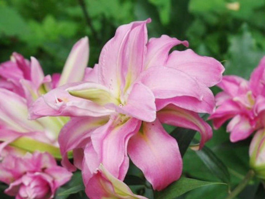 Lilie 'Double Surprise' - odmiana Double Surprise z pewnością zapewni właściwy efekt 'wow'. Osiąga wysokość 90 cm. Podwójne kwiaty przechodzą od jasnego do ciemnoróżowego koloru.