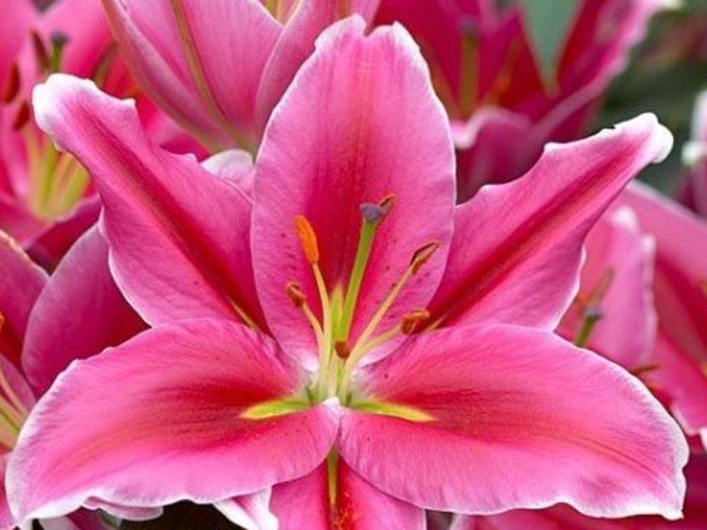 Lilie 'Lake Carey' - orientalna hybrydowa lilia. Ta odmiana ma najpiękniejsze różowe kwiaty. Krawędzie płatków są faliste i podkreślone białym kolorem, który pięknie kontrastuje z różowymi odcieniami płatków. Osiąga wysokość około 90 - 110 cm. Różowy kolor traci intensywność w bezpośrednim świetle słonecznym. Kolor jeszcze bardziej wyróżnia się w połączeniu ze świeżymi, zielonymi liśćmi i łodygami.
