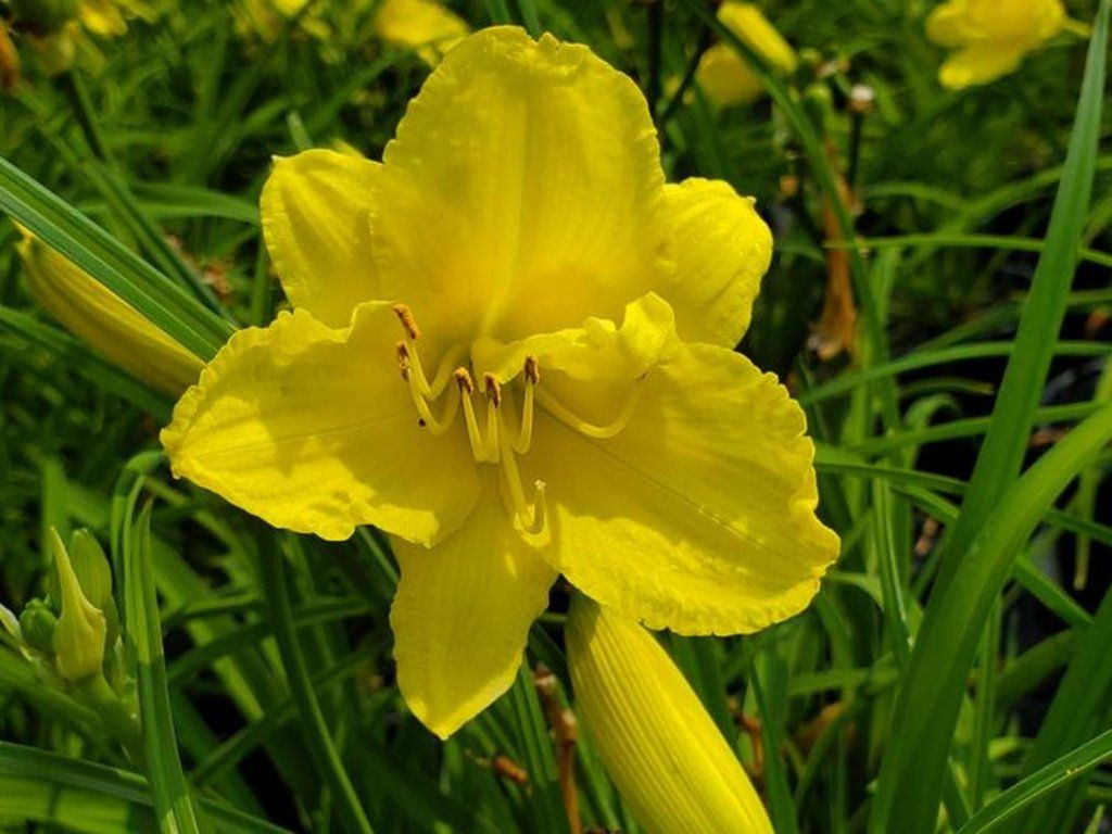 Hemerocallis 'Happy Returns' - bardzo interesująca odmiana hemerocallisa, która zazwyczaj osiąga wysokość 45-60 cm. Zyskała popularność dzięki swoim bardzo interesującym kwiatom, mimo że pojedyncze kwiaty utrzymują się tylko przez jeden dzień. Tworzy gęste kępy trawiastych, ciemnozielonych liści z wyprostowanymi łodygami, na których w lipcu i sierpniu pojawiają się atrakcyjne kwiaty. Są one jasnożółte, słoneczne. Krawędzie płatków są lekko pofałdowane. Obficie kwitnie przez całe lato, a kwitnienie może trwać nawet kilka tygodni. Idealny wybór dla każdego, kto szuka rośliny długo kwitnącej i jednocześnie łatwej w utrzymaniu, czy to w ogrodach, na tarasach czy na rabatach kwiatowych.