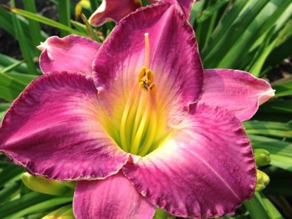 Hemerocallis 'Moroccan Sunrise' - bardzo dekoracyjna odmiana, osiągająca wysokość 60 cm. Kwiaty kwitną na wysokich łodygach od lipca, mają różowy kolor z jaśniejszym środkiem i żółtym gardłem. Przyciągają motyle i pszczoły. Idealny do rabat bylinowych. Nadaje się do cięcia.