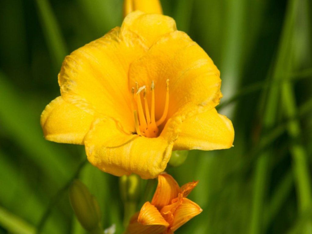 Hemerocallis 'Stella de Oro' - zdecydowanie najpopularniejsza odmiana 'Złota Gwiazda'. 'Bogini piękna' jednego słonecznego dnia, każdy kwiat kwitnie tylko jeden dzień. Średniozielone liście rosną w kępach, są wąskie, długie i mocno strukturyzowane. Odmiana mniejsza wzrostem, osiąga wysokość około 20 - 30 cm. Kwitnie dzwonkowatymi, czysto złotożółtymi kwiatami z lekko pofałdowanymi brzegami, są jadalne. Kwiaty pojawiają się od czerwca do września. Kwitnie obficie i najdłużej. Nadaje się do nasadzeń grupowych. Wyższe odmiany wykorzystujemy jako rośliny soliterowe, mniejsze zaś do uprawy w pojemnikach. Możemy je łączyć z rudbekiami, krwawnikami, werbeną argentyńską, irysami syberyjskimi, naparstnicami, dziewannami, dzwonkami i monardami. Swoje miejsce znajdą jako uzupełnienie elementów wodnych. Nieodparcie wyglądają z wysokimi trawami.