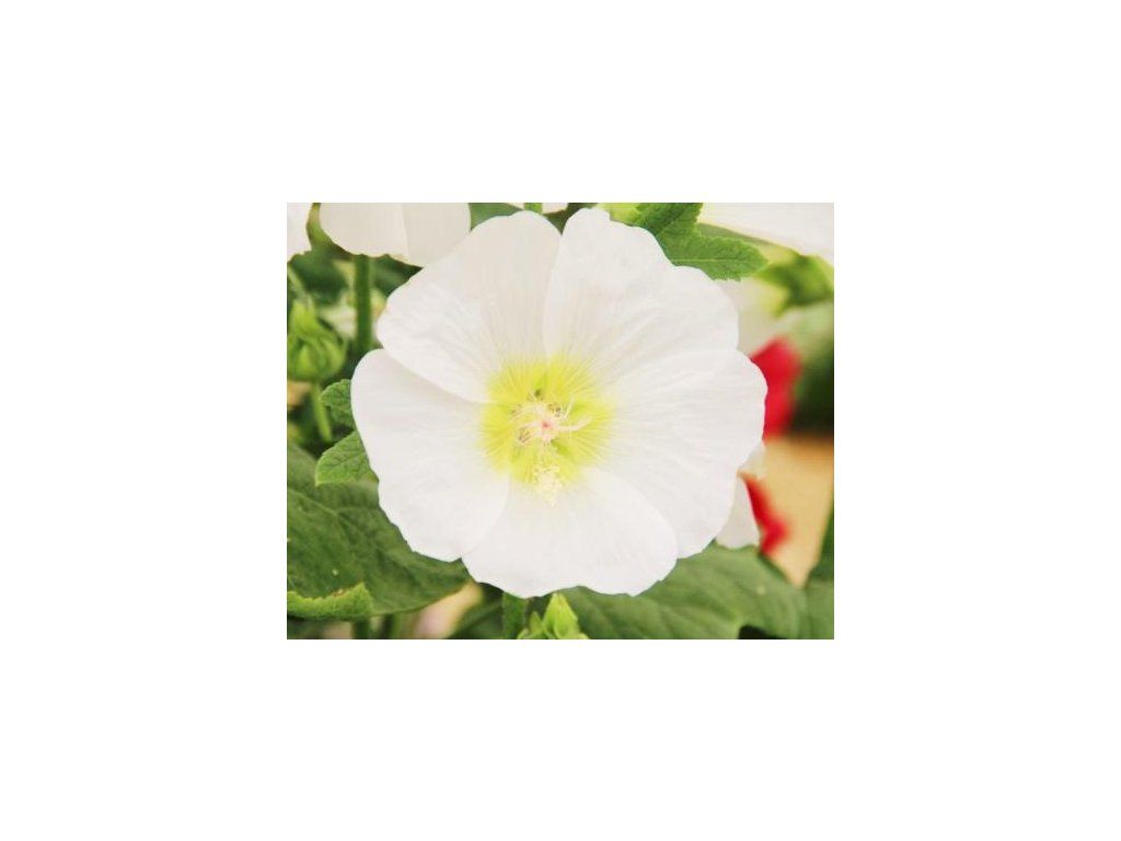 Malwa różowa 'White' - duży i regularny kwiat zdobi biały kolor. Środek jest żółty. Dorasta do wysokości 150 cm. Potrzebuje słonecznego stanowiska. Bardzo dobrze wygląda w nasadzeniach mieszanych, w których tworzy efektowne tło dla innych roślin. Można ją uprawiać również jako soliter.