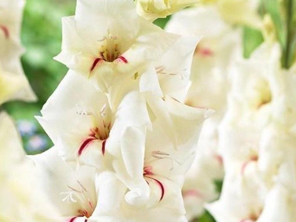 Mieczyk 'Silverstreak' - mieczyk z kremowobiałymi kwiatami, które uzupełniają czerwone języczki w środku płatków. Kwiatostan ma wysokość do 60 cm. Osiąga całkowitą wysokość 100-110 cm. Kwitnie od połowy lipca.