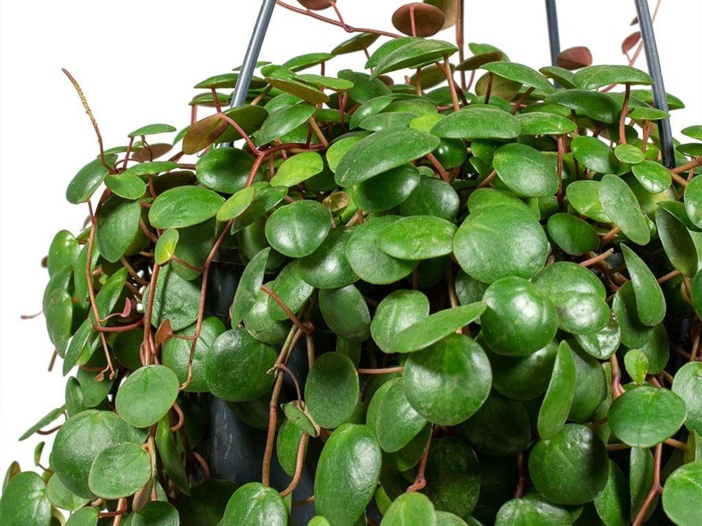 Peperomia - roślina wisząca z małymi, okrągłymi liśćmi. Liście są wielobarwne, z srebrzystym lub brązowym unerwieniem, łodyga ma czerwonawe zabarwienie. Niewątpliwą zaletą Peperomii jest to, że potrafi odfiltrować szkodliwe substancje z powietrza. Doskonale sprawdzi się jako roślina dekoracyjna w jasno oświetlonym pomieszczeniu. Ze względu na swoją niewymagającą naturę, jest jedną z ulubionych roślin domowych.