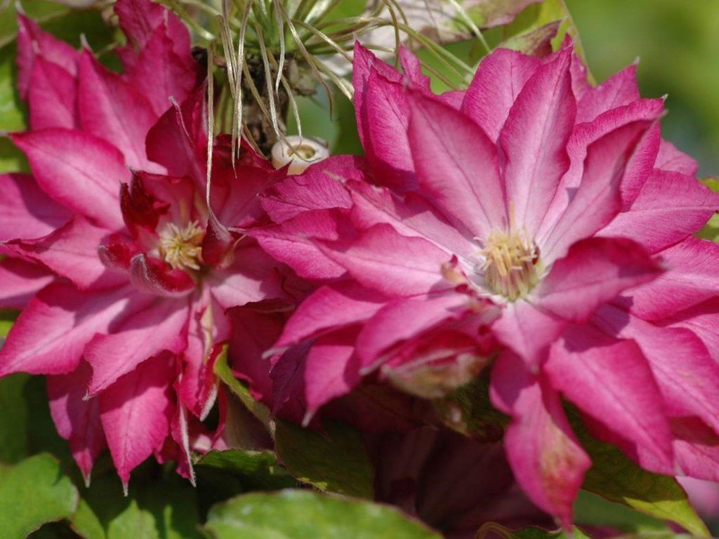 Clematis 'Kaen' - niezwykły, ale bardzo piękny clematis, który ma pełne do półpełnych kwiaty, w kolorze czerwono-różowym. Kwiatostan jest duży i pojawia się od maja do czerwca oraz od lipca do sierpnia. Kwitnie więc dwukrotnie, dzięki czemu będzie zdobić Twój ogród przez cały sezon letni. Roślina w dorosłości dorasta do wysokości około 2 - 2,5 m. Pylniki są kremowo zabarwione. Po przekwitnięciu tworzy się owłosienie, które również zdobi roślinę. Liście ma ciemnozielone, trójdzielne i opadają na zimę. Należy do 2. grupy powojów, określającej ich cięcie. Powojniki nadają się do uprawy na różnych rodzajach podpór, np. przy altanach, kratach, tyczkach, pergolach czy innych podporach. Nie jest wymagający w uprawie, a dzięki swojej odporności zalicza się do najczęściej poszukiwanych roślin pnących.