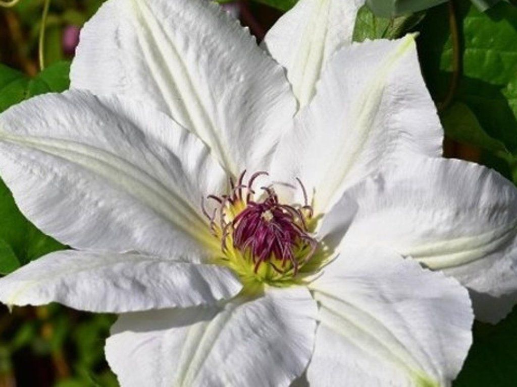 Clematis 'Królowa Jadwiga' - ciekawa i atrakcyjna odmiana clematisu o jedwabistych, białych, okrągłych i płaskich kwiatach, o średnicy 15-16 cm. Rozłożyste kwiatostany składające się z 8 owalnych płatków o lekko pofałdowanych brzegach i wyraźnym środkowym żebrowaniu. W środku kwiatu znajdują się pręciki z pylnikami, które są pięknie ułożone i mają fioletowe zabarwienie. Pierwsze kwiaty pojawiają się w maju i kwitną stopniowo aż do września. Głęboko zielone liście składają się z trzech dużych, owalnych płatków. Roślina w dorosłości osiąga wysokość około 2-2,5 m. Doskonale sprawdzi się obok tarasów, pergoli lub innych sztucznych podpór, dodając delikatnego i eleganckiego wyglądu Twojemu ogrodowi. Jeśli szukasz niewymagającej rośliny, która od razu przyciągnie wzrok, clematis jest właściwym wyborem. Należy do 3 grupy powojników, określającej ich cięcie.