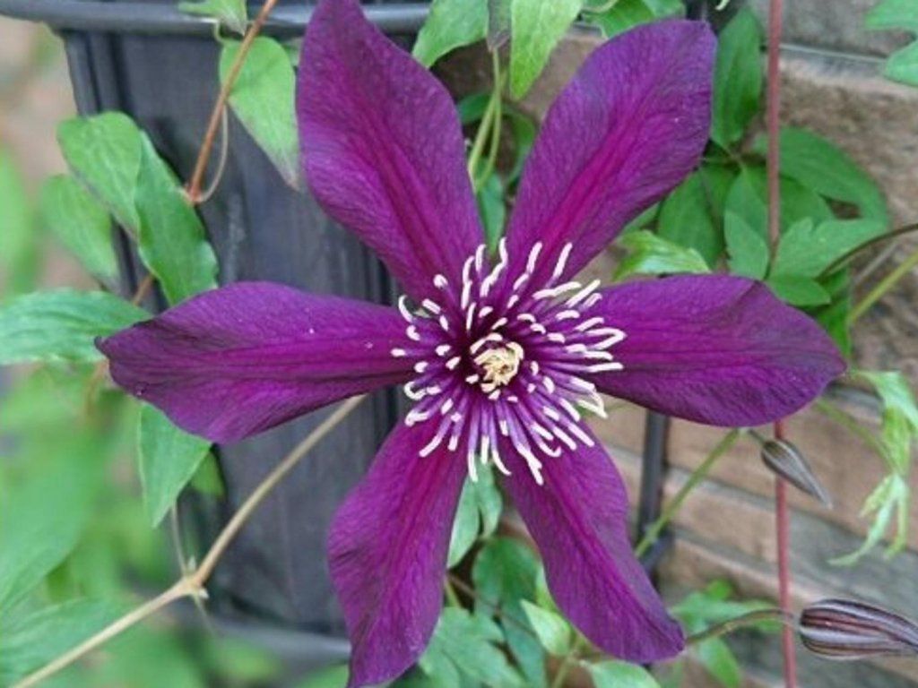 Clematis 'Panther' - niezwykły, atrakcyjny kultywar powojnika, z ciekawymi kwiatami o średnicy 10-12 cm. Które dosłownie Cię zachwycą. Są one złożone z 4-9 delikatnie pofalowanych płatków w intensywnym, ciemnofioletowym kolorze. Pośrodku kwiatów znajdują się pręciki z pylnikami w kolorze kremowo-żółtym. Kwitną od lipca do sierpnia. Będzie zdobić Twój ogród przez całe lato. Roślina w dorosłości osiąga wysokość około 1-2 m. Rozmnaża się przez pędy bazalne. Doskonale sprawdzi się obok tarasów, pergoli, tyczek, krat czy innych sztucznie stworzonych podpór, wnosząc kolor i romantyczny wygląd do Twojego ogrodu. Nie jest wymagający w uprawie, a jego pielęgnacją poradzi sobie nawet początkujący, ale swoim urokiem powojnik z łatwością zyska zainteresowanie nawet doświadczonych ogrodników. Należy do 2. grupy powojników określającej ich cięcie.