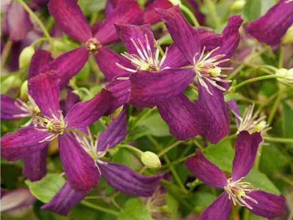 Powojnik 'Sweet Summer Love' - czarujący kultywar powojnika, który wyróżnia się przede wszystkim małymi kwiatami, które przyjemnie pachną. Kwiaty są ciemnofioletowe. W środku kwiatów znajdują się efektowne pręciki zabarwione na żółto z pylnikami, które jednak przebarwiają się na bordowo. Kwiatnie przez całe lato aż do jesieni. Ta odmiana dorasta do około 3 - 3,5 m wysokości. Bardzo ładna odmiana. Po przekwitnięciu tworzy się owłosienie, które również zdobi roślinę. Liście ma ciemnozielone, trójdzielne i opadają na zimę. Należy do 3 grupy powojników określającej ich cięcie. Jest to roślina pnąca, która świetnie sprawdzi się obok tarasów, pergoli, tyczek, krat czy innych sztucznie stworzonych podpór i wniesie kolor oraz romantyczny wygląd do Twojego ogrodu. Nie jest wymagający w uprawie, dzięki czemu powojnik stał się numerem jeden w wyborze roślin pnących i kwitnących do czeskich i słowackich ogrodów. Zdecydowanie nie powinno go zabraknąć również w Twoim ogrodzie.